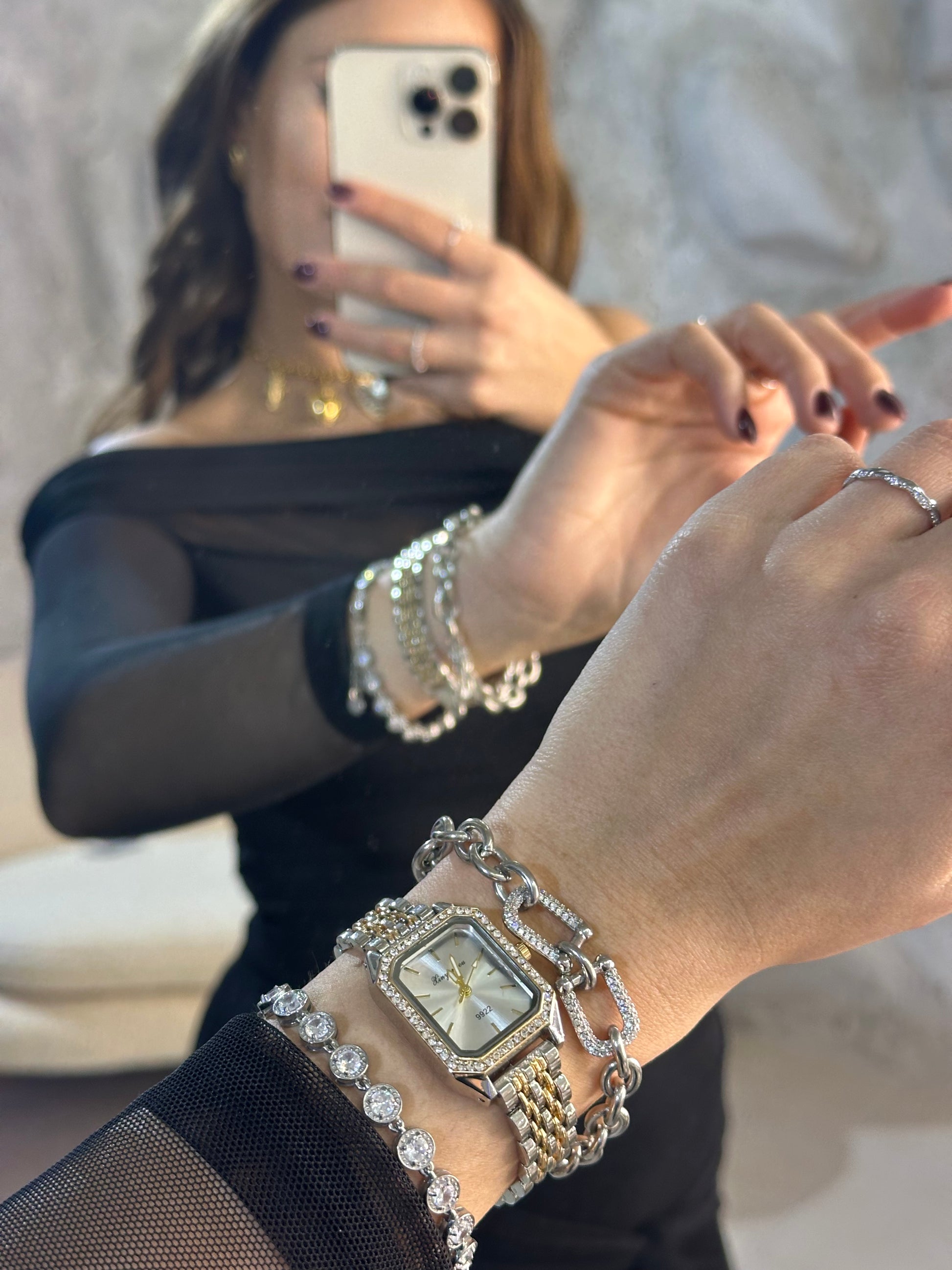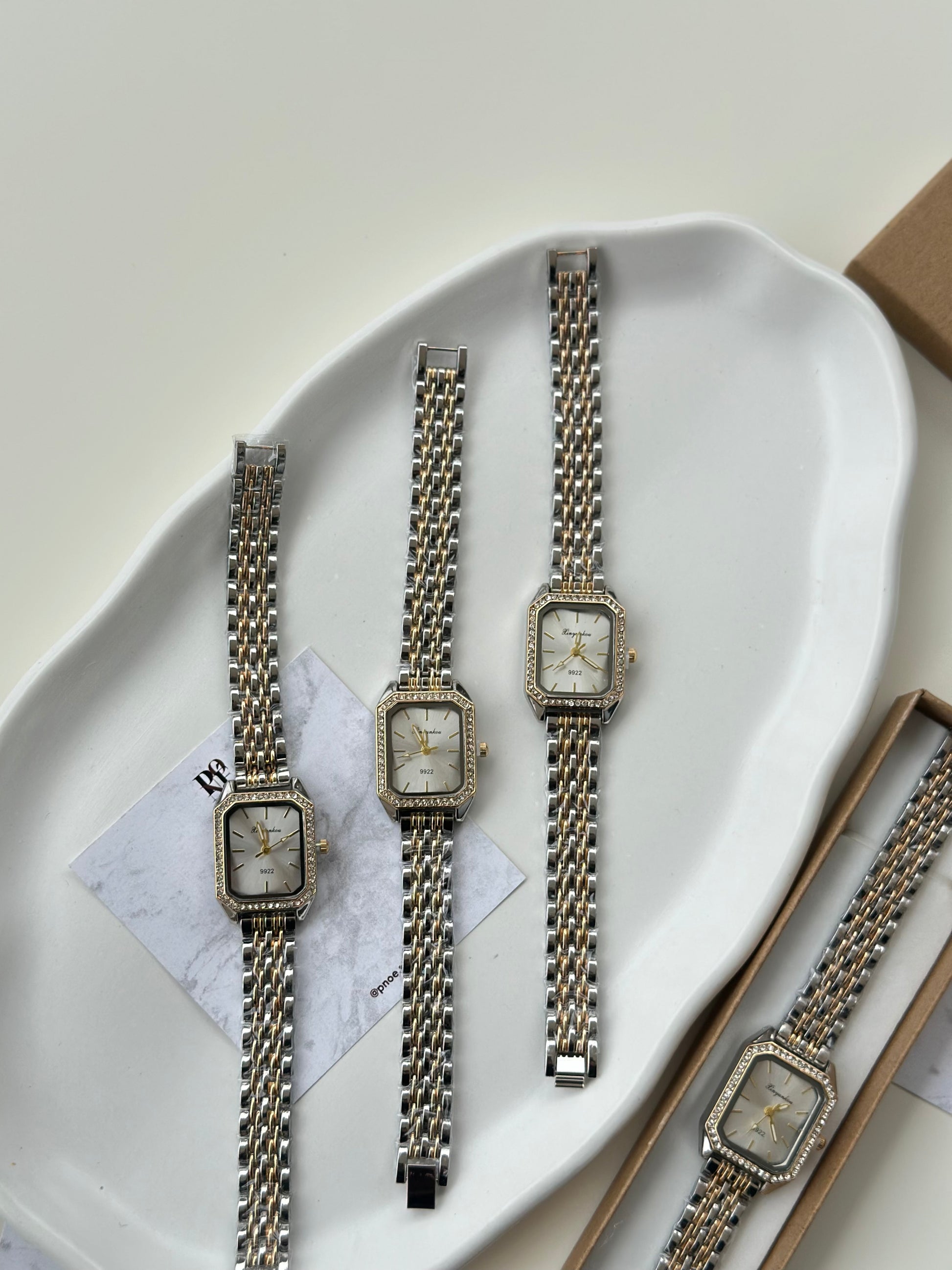 Γυναικείο Ρολόι με Τετράγωνο λευκο Καντράν και Χρυσό-Ασημί Λουρί | Κομψότητα & Στυλ