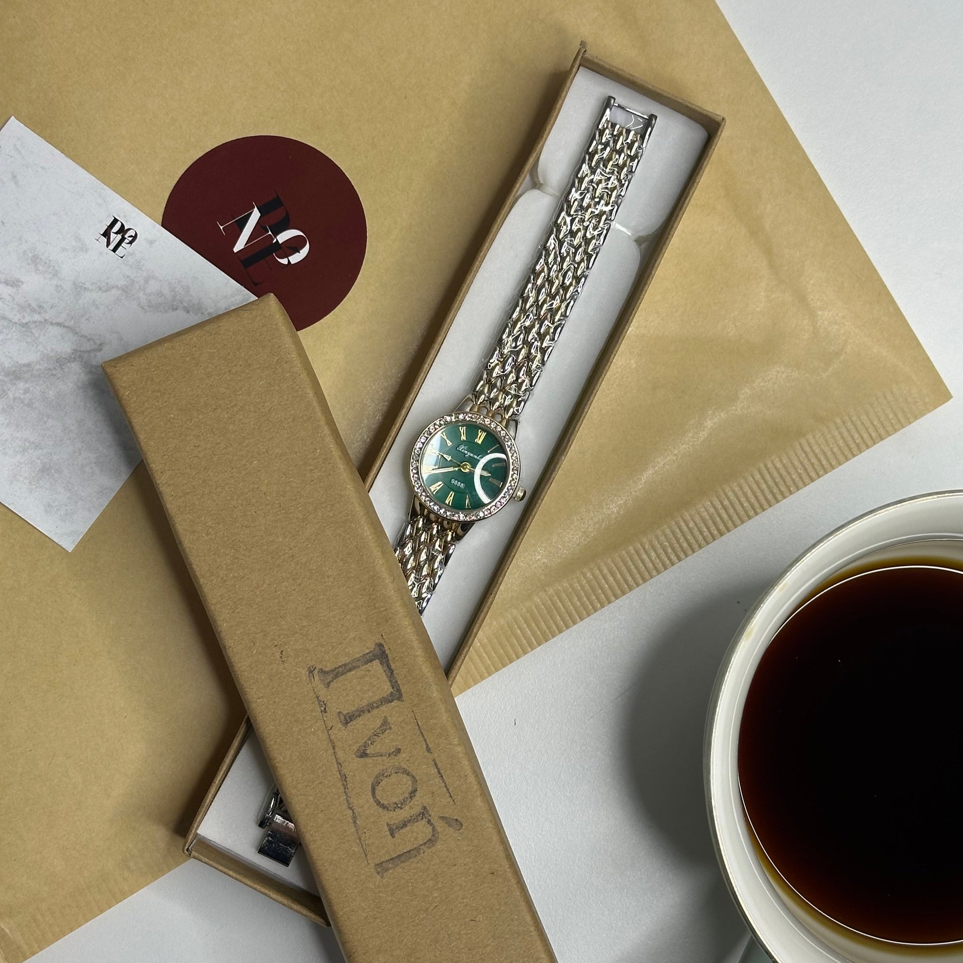 Ρολόι "Green Luxe" με Πράσινο Στρογγυλό Καντράν και Χρυσό-Ασημί Λουρί | Ατσάλινη Κατασκευή