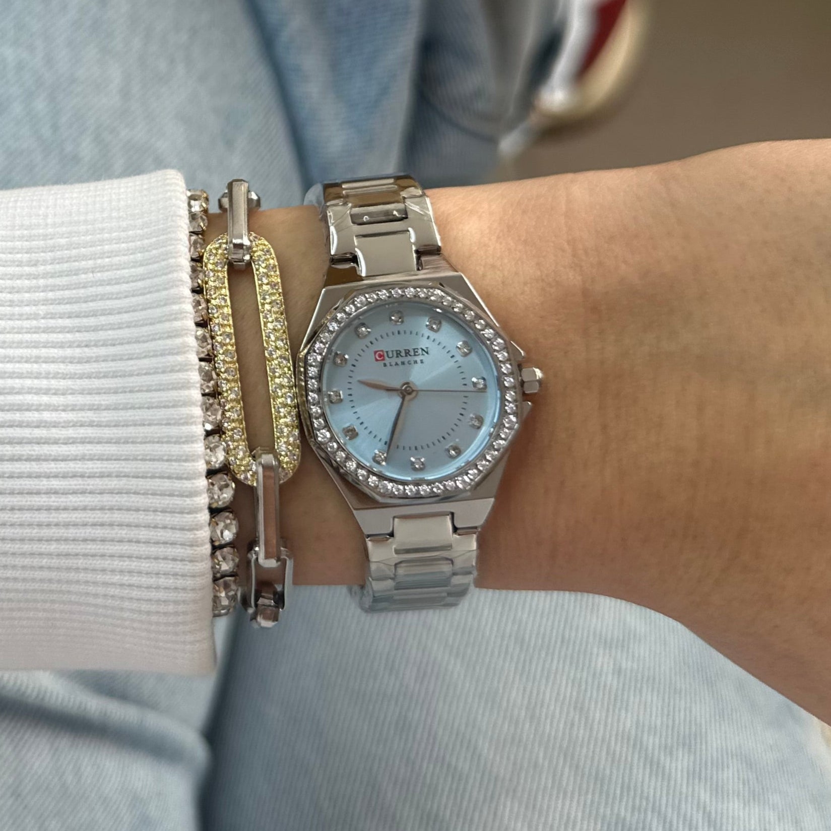 Ρολόι "Azure Mist" με Γαλάζιο Στρογγυλό Καντράν και Ασημί Λουρί | Ατσάλινη Κατασκευή