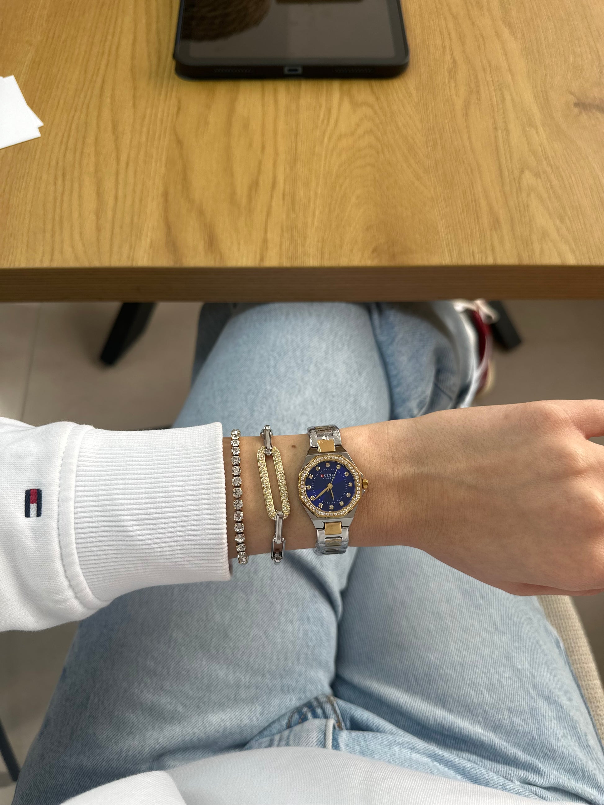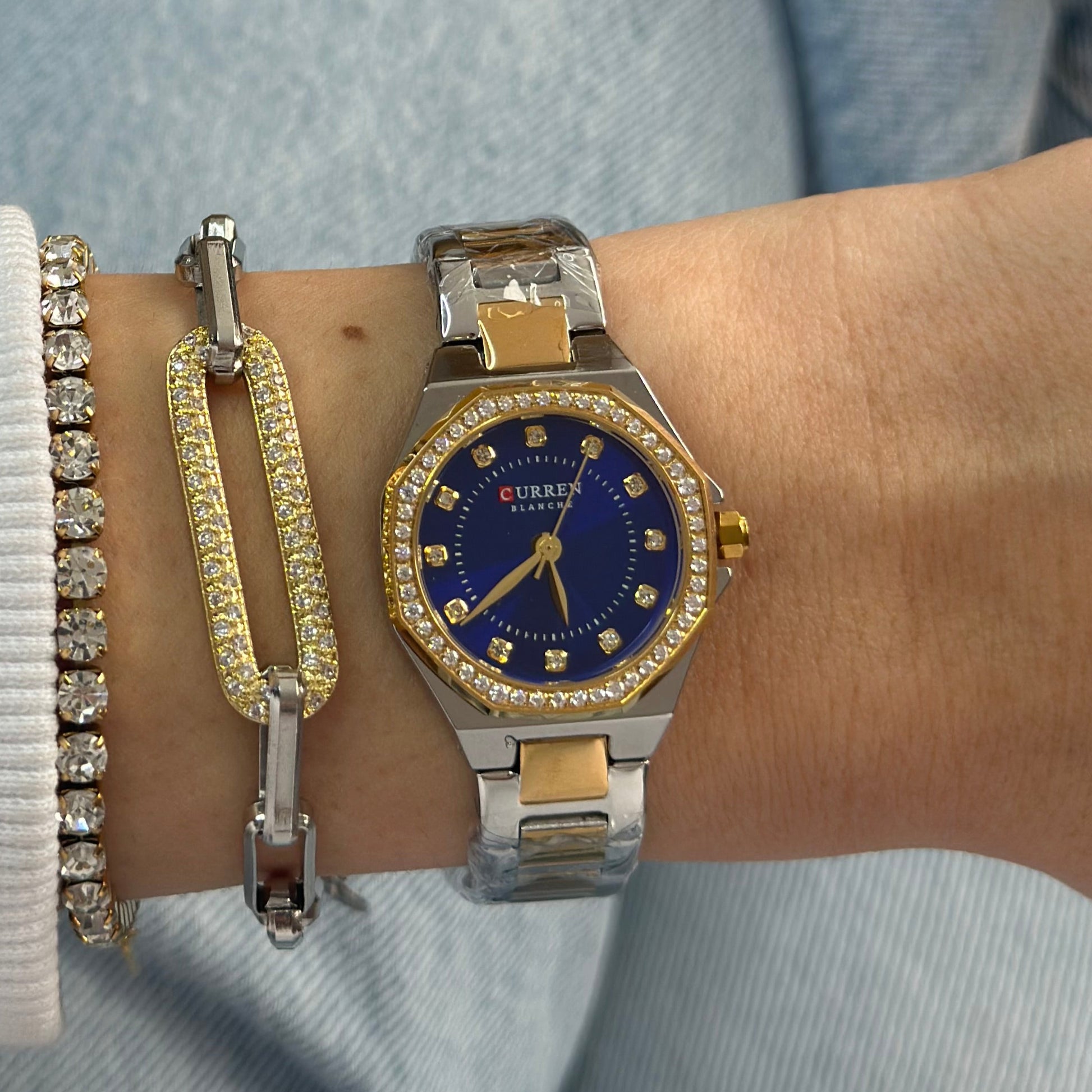 Ρολόι "Midnight Luxe" με Σκούρο Μπλε Στρογγυλό Καντράν και Χρυσό-Ασημί Λουρί | Ατσάλινη Κατασκευή