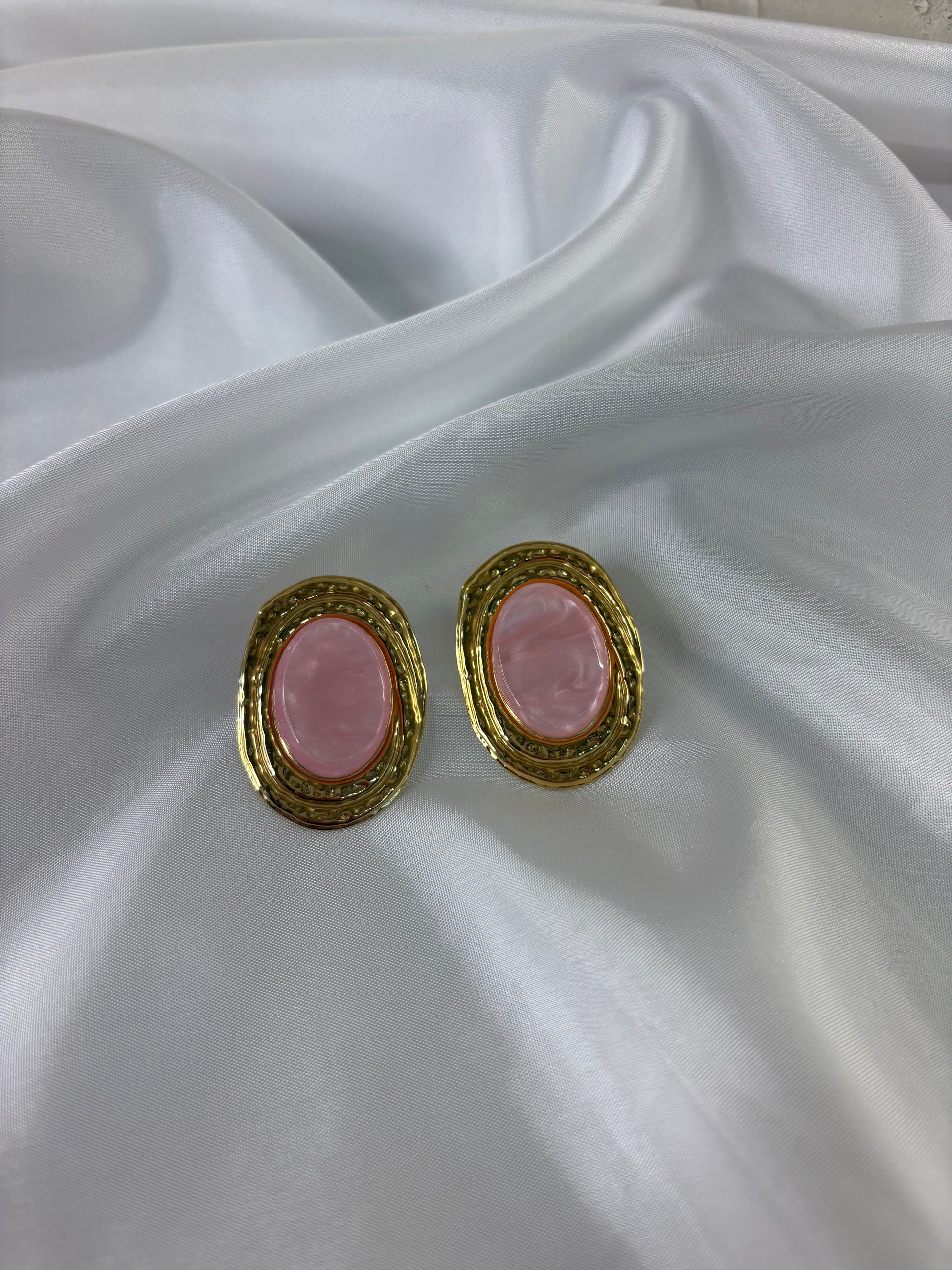 Σκουλαρίκια με χρυσές και ροζ λεπτομέρειες