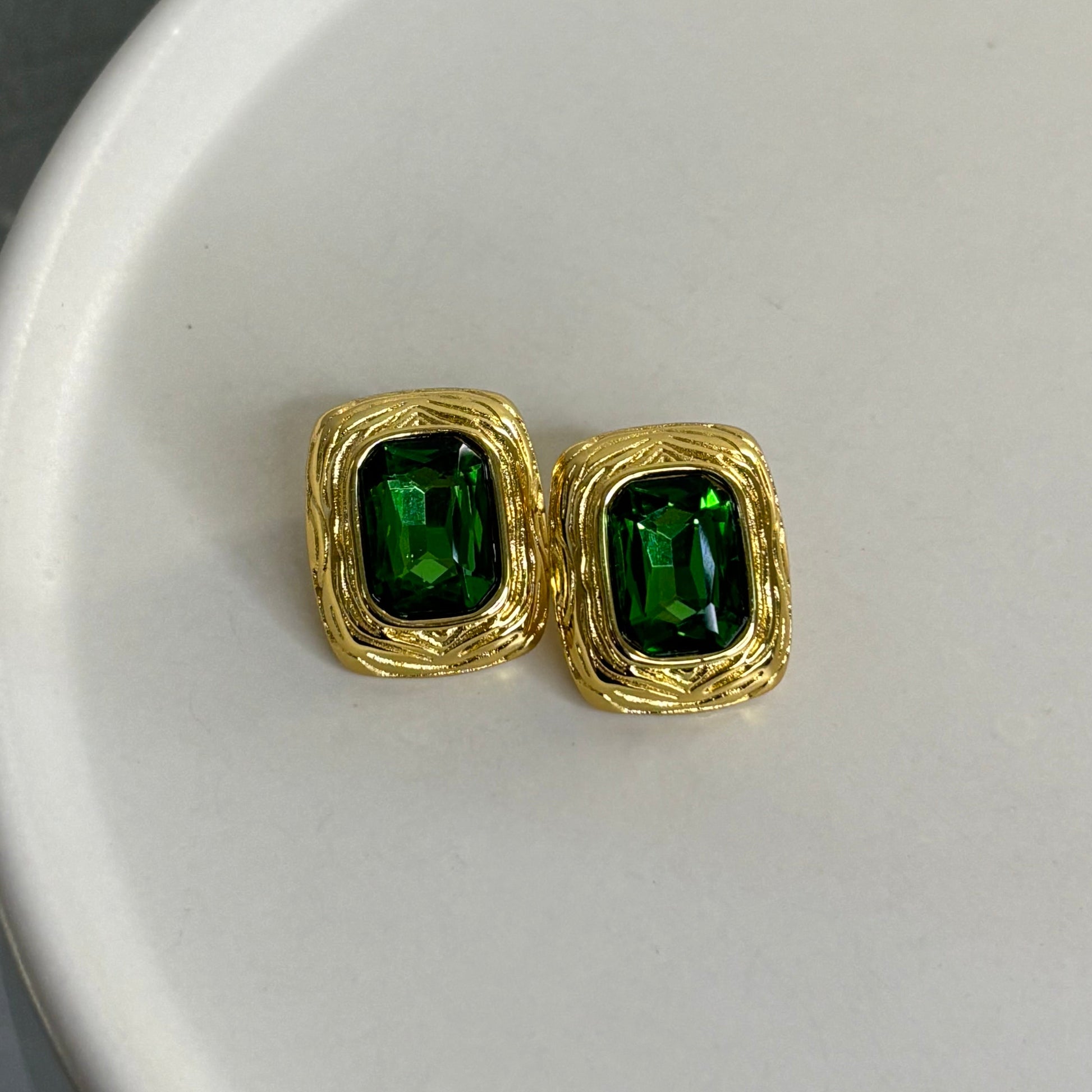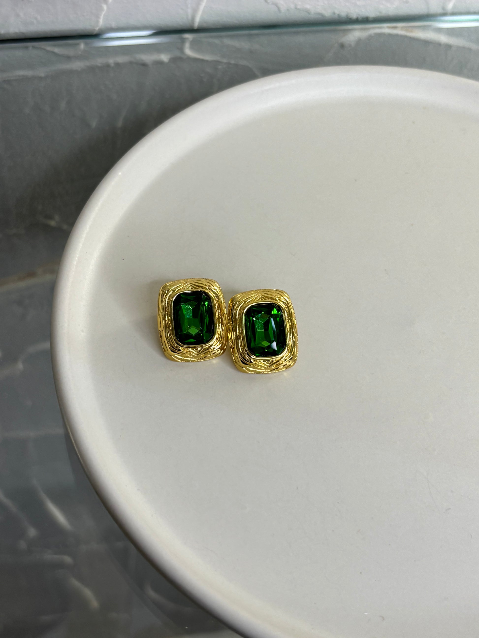 Σκουλαρίκι ατσάλινο με πράσινες πέτρες