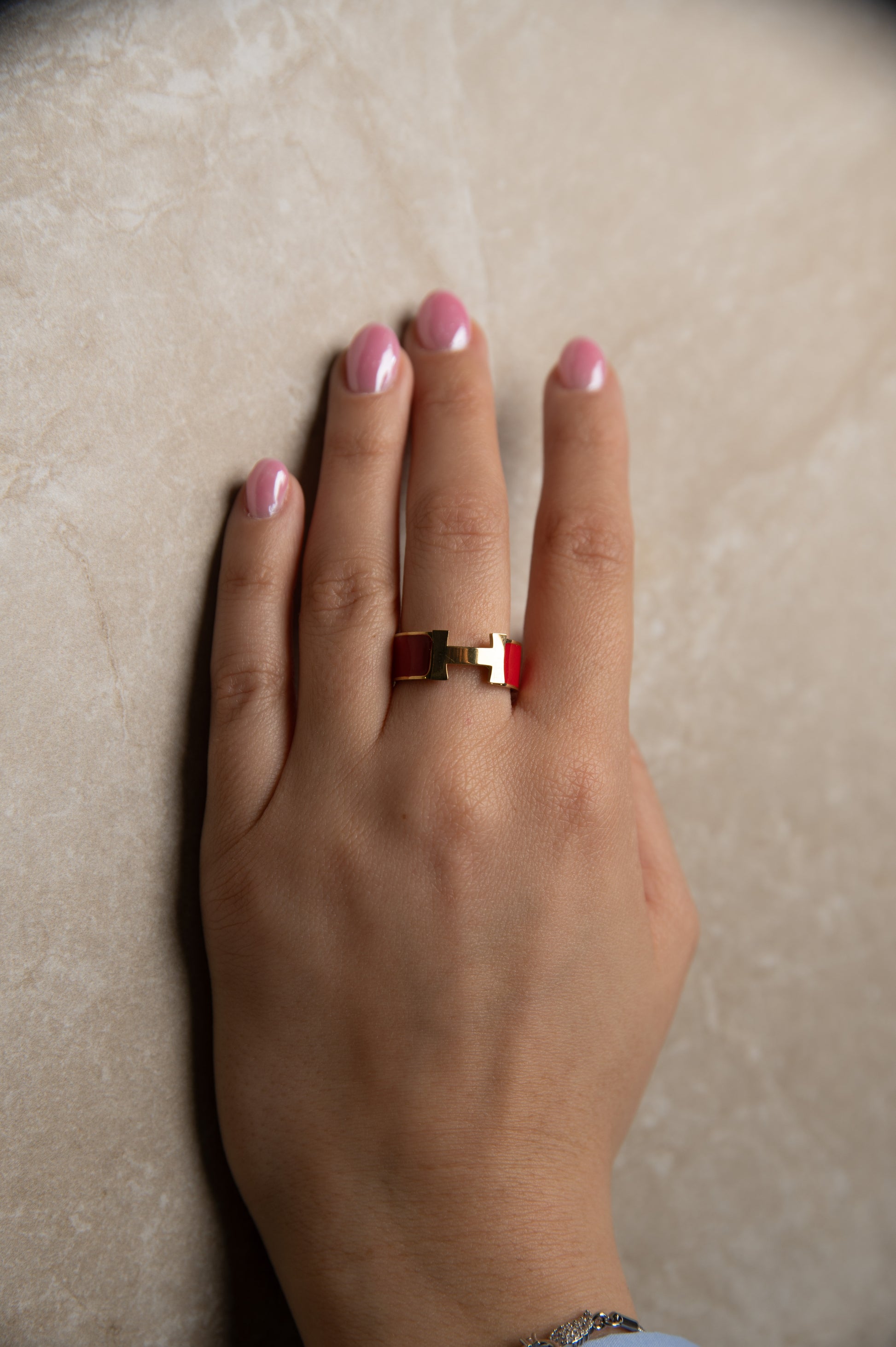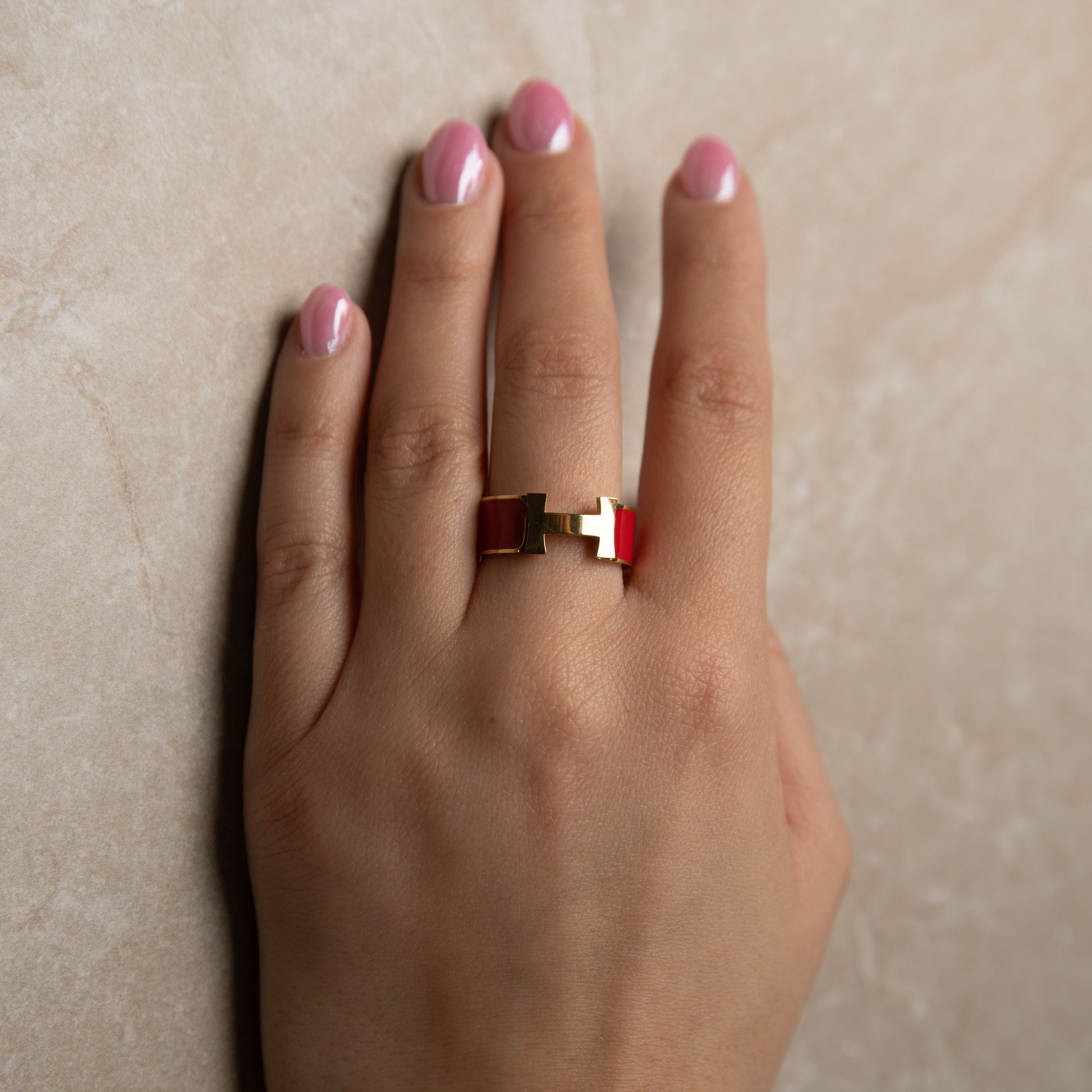 Φαρδύ Δαχτυλίδι σε Χρυσό και Κόκκινο Χρώμα με Γεωμετρικό Σχέδιο | Εντυπωσιακό και Μοντέρνο