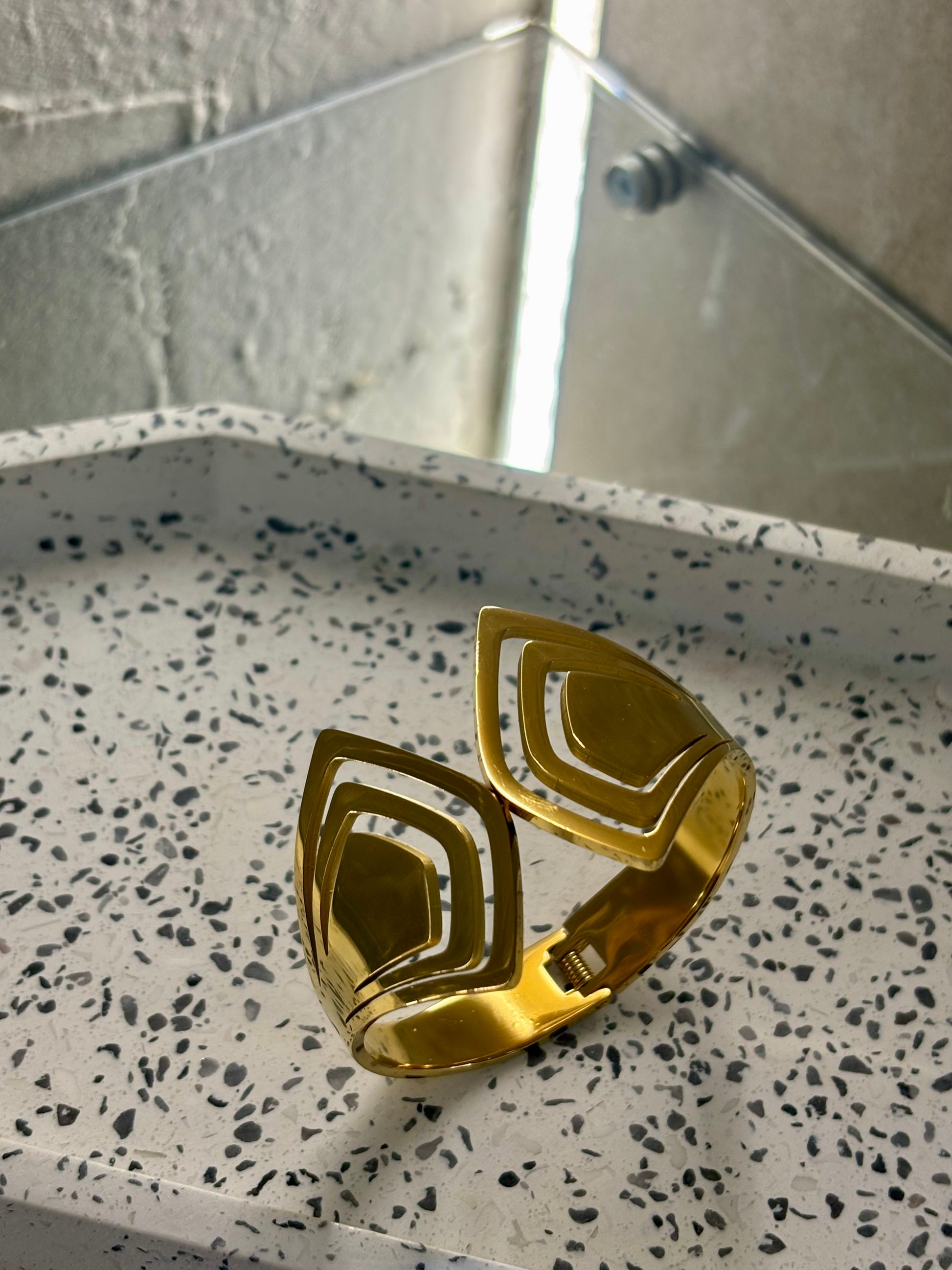 Χειροπέδα ατσάλινη με σχέδια σε χρυσό χρώμα