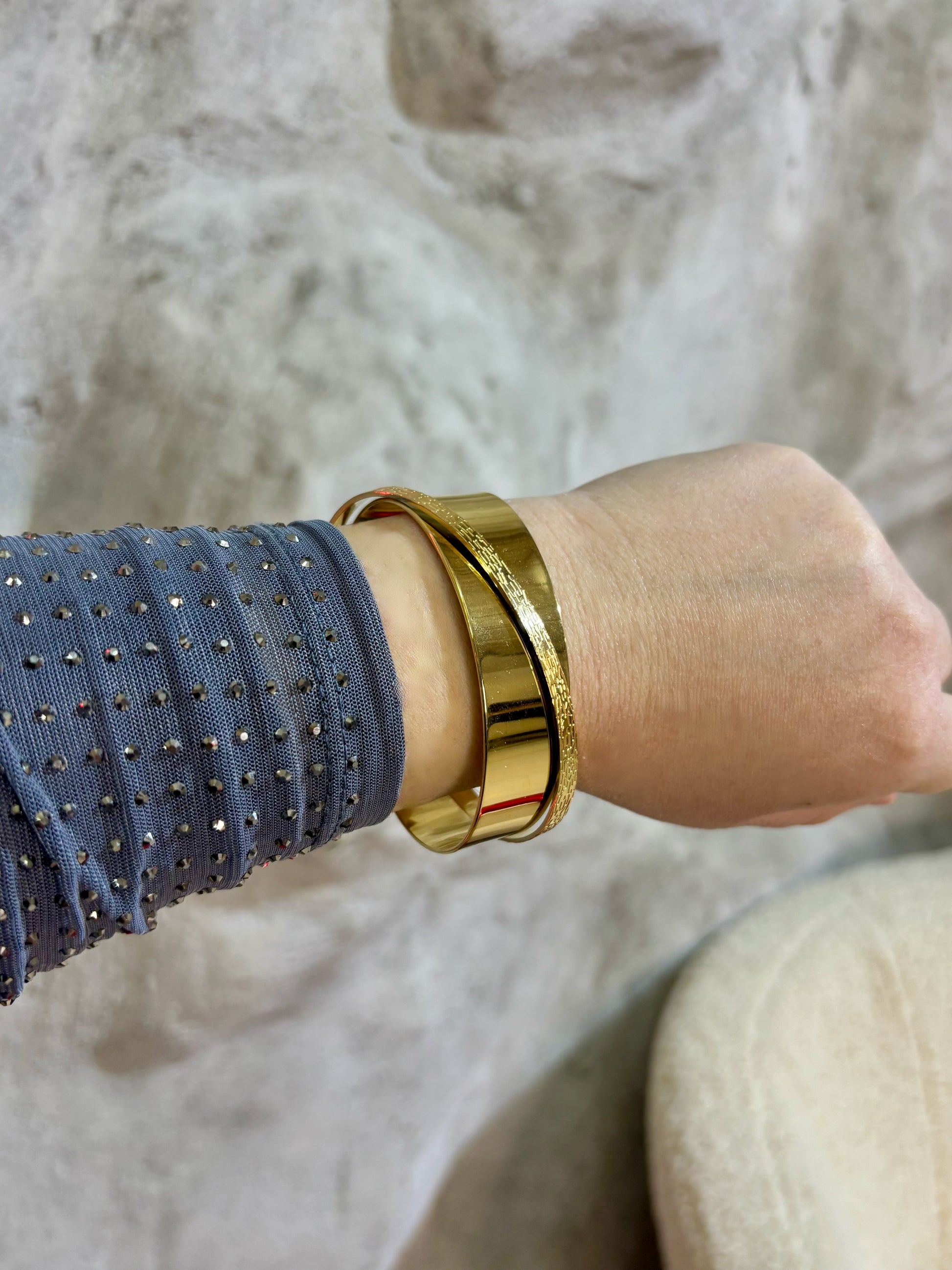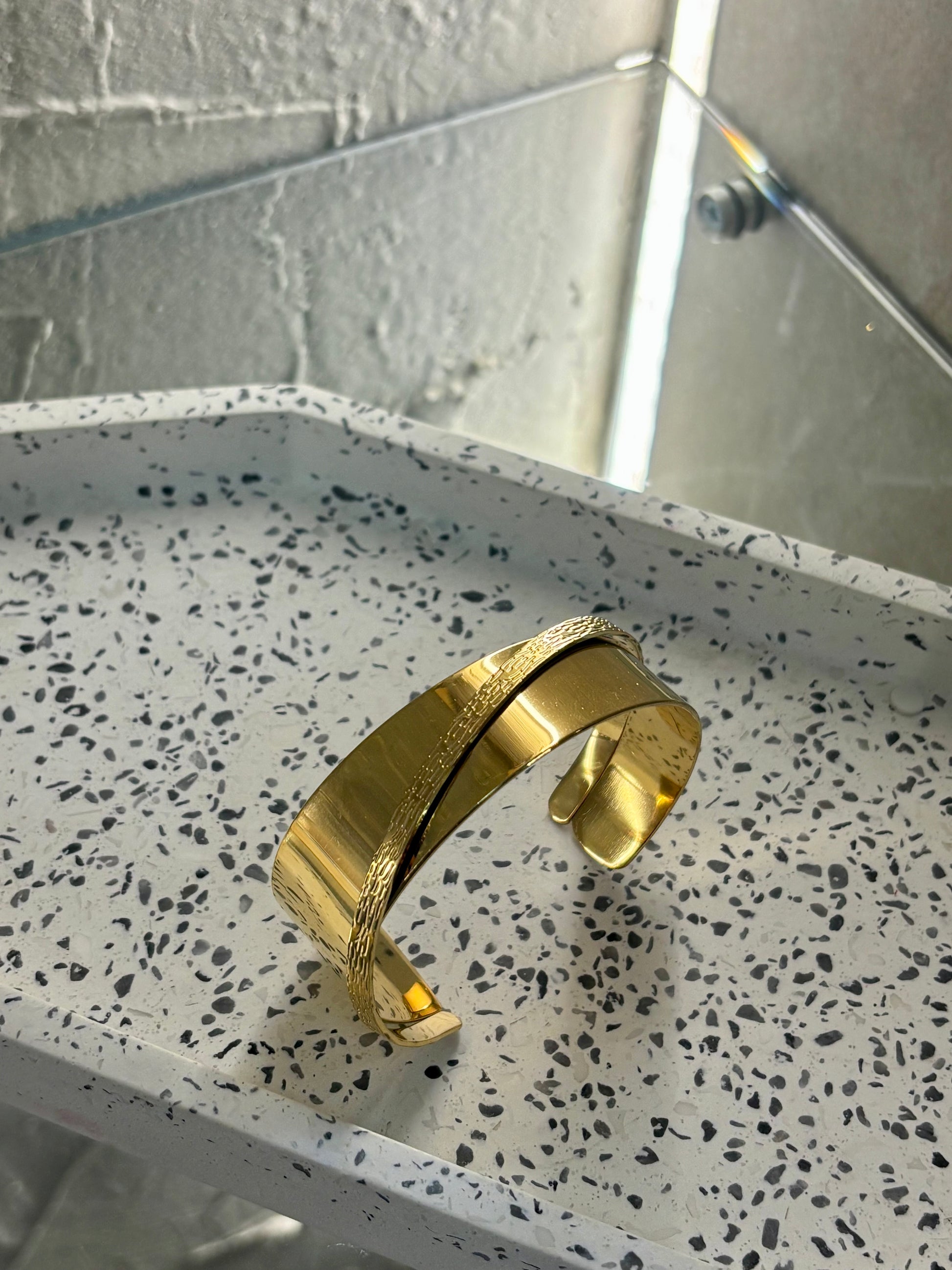 Χρυσή ατσάλινη χειροπέδα με μικρή λεπτομέρεια