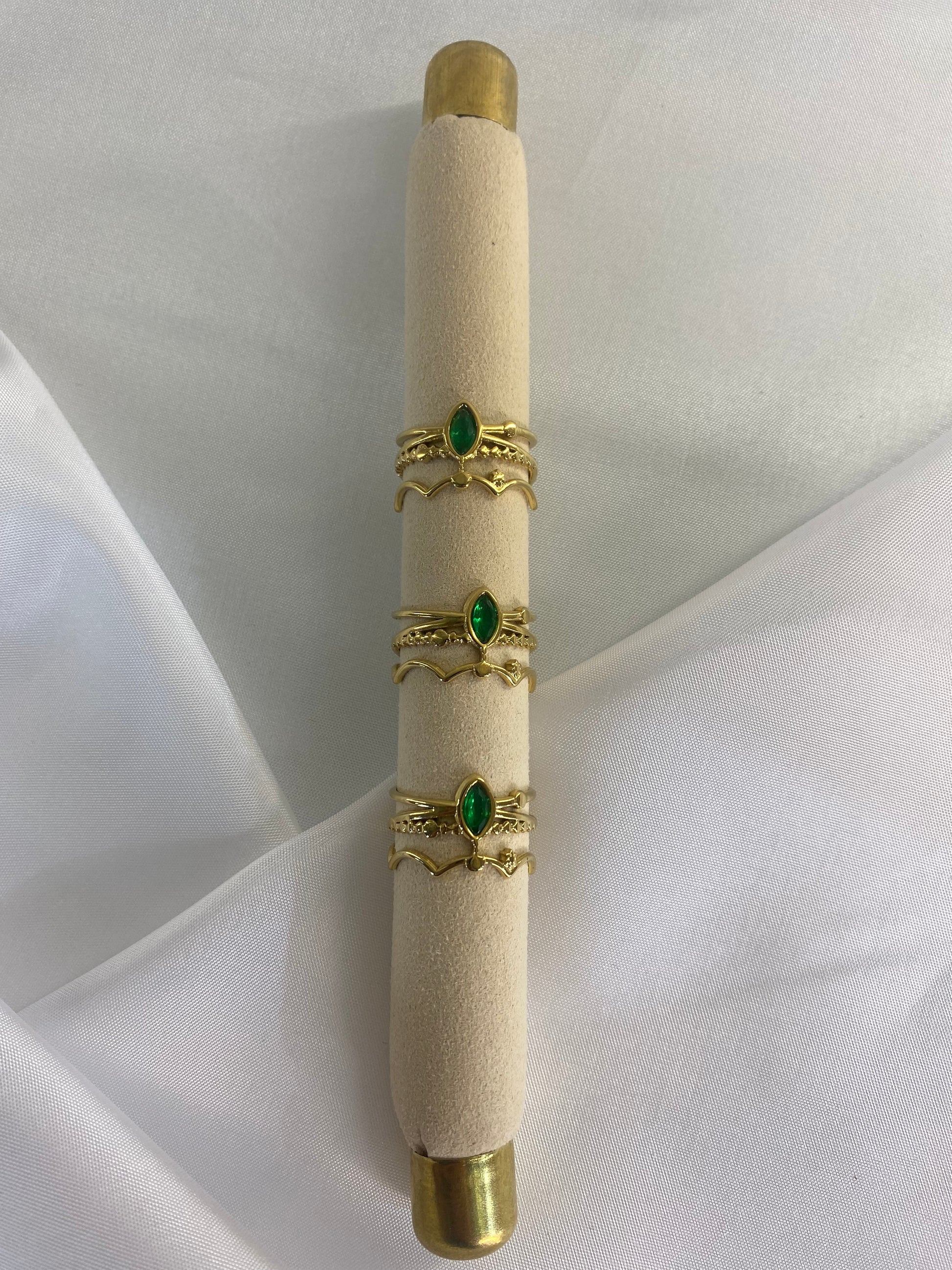 Χρυσό δαχτυλίδι,με πράσινη λεπτομέρεια από χαλκό