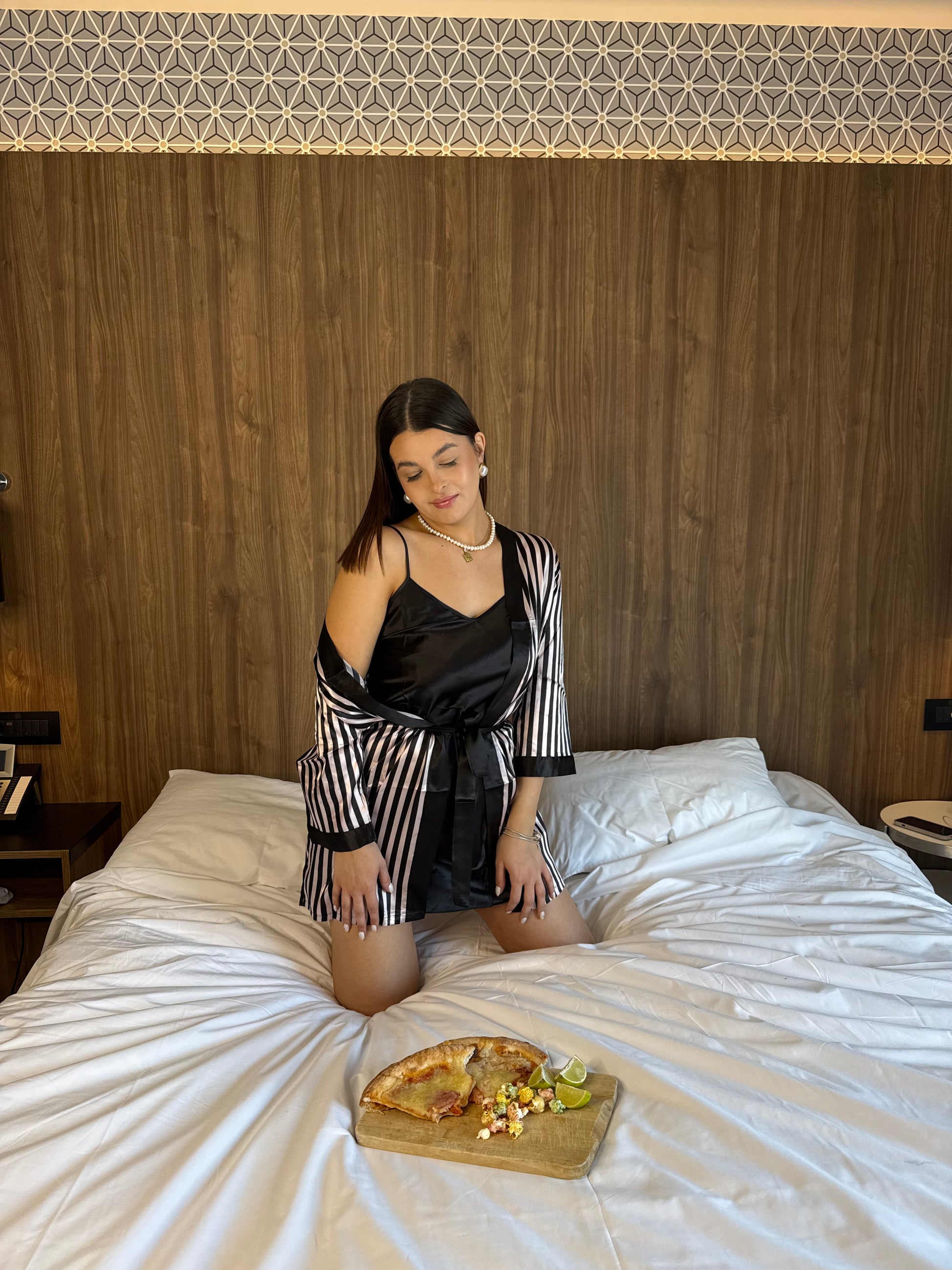 ✨ 2-piece set: Νυχτικό & ρόμπα σε μαύρο satin
