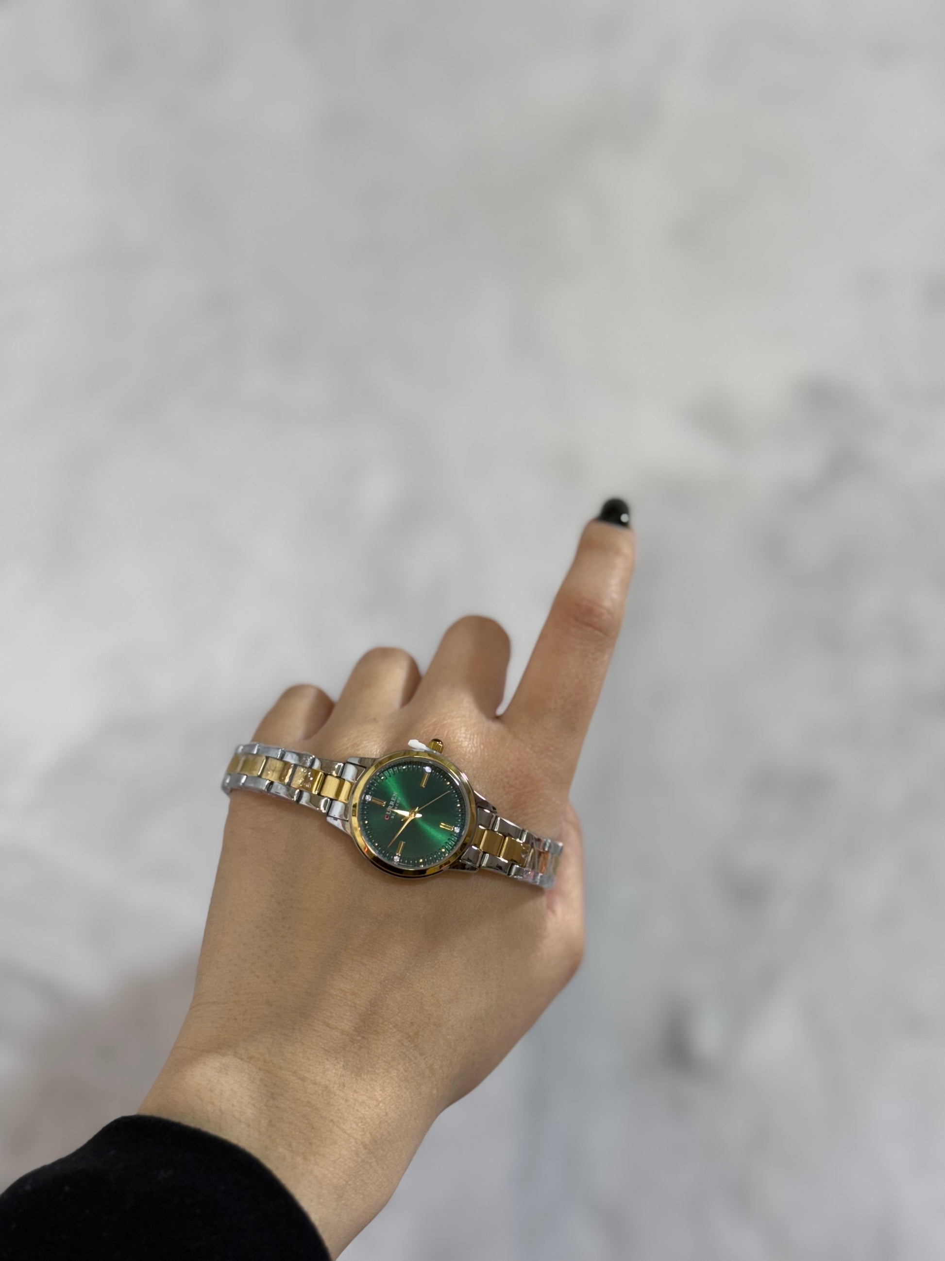 Ένα εντυπωσιακό ρολόι Citizen από ατσάλι, με κομψό πράσινο καντράν και χρυσές λεπτομέρειες, που προσαρμόζεται ιδανικά στις ανάγκες σας. Διαθέσιμο από την Pnoe Studio, το ρολόι συνδυάζει μοντέρνα και στυλάτη εμφάνιση με αντοχή, κάνοντάς το ιδανικό για καθημερινές αλλά και επίσημες περιστάσεις. Η ατσάλινη μπάντα προσφέρει μια αίσθηση κομψότητας, ενώ η ακριβής κατασκευή του εξασφαλίζει μακροχρόνια χρήση. Ιδανικό για εκείνους που επιθυμούν να συνδυάσουν στυλ, λειτουργικότητα και προσαρμογή σε ένα ρολόι.