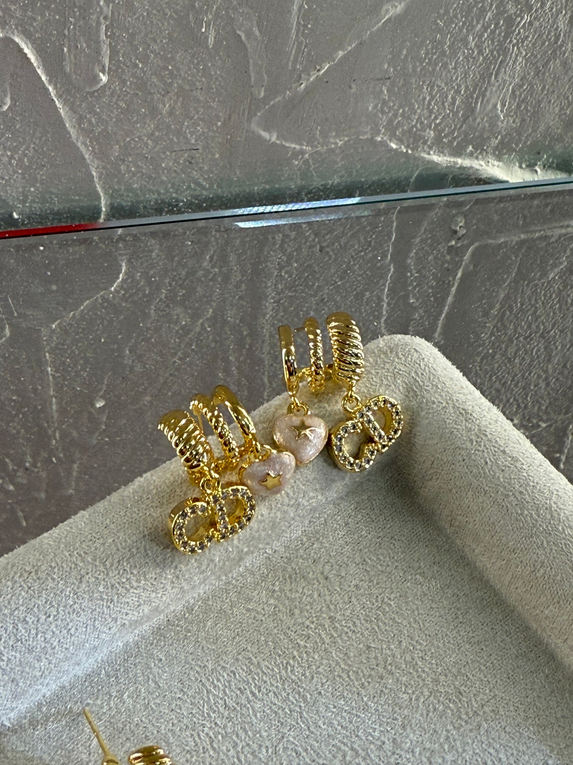 Ρομαντικά σκουλαρίκια σε σχήμα καρδιάς με περίτεχνα σχέδια. Ιδανικά για να προσθέσετε μια διακριτική νότα αγάπης σε κάθε σας εμφάνιση.