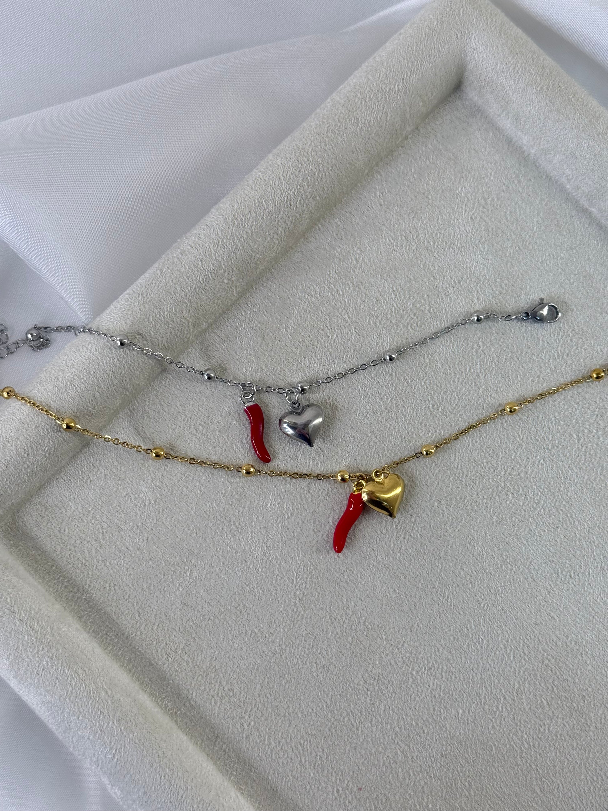 Ατσάλινα βραχιολάκια με charm πιπεριά – χρυσό & ασημί
