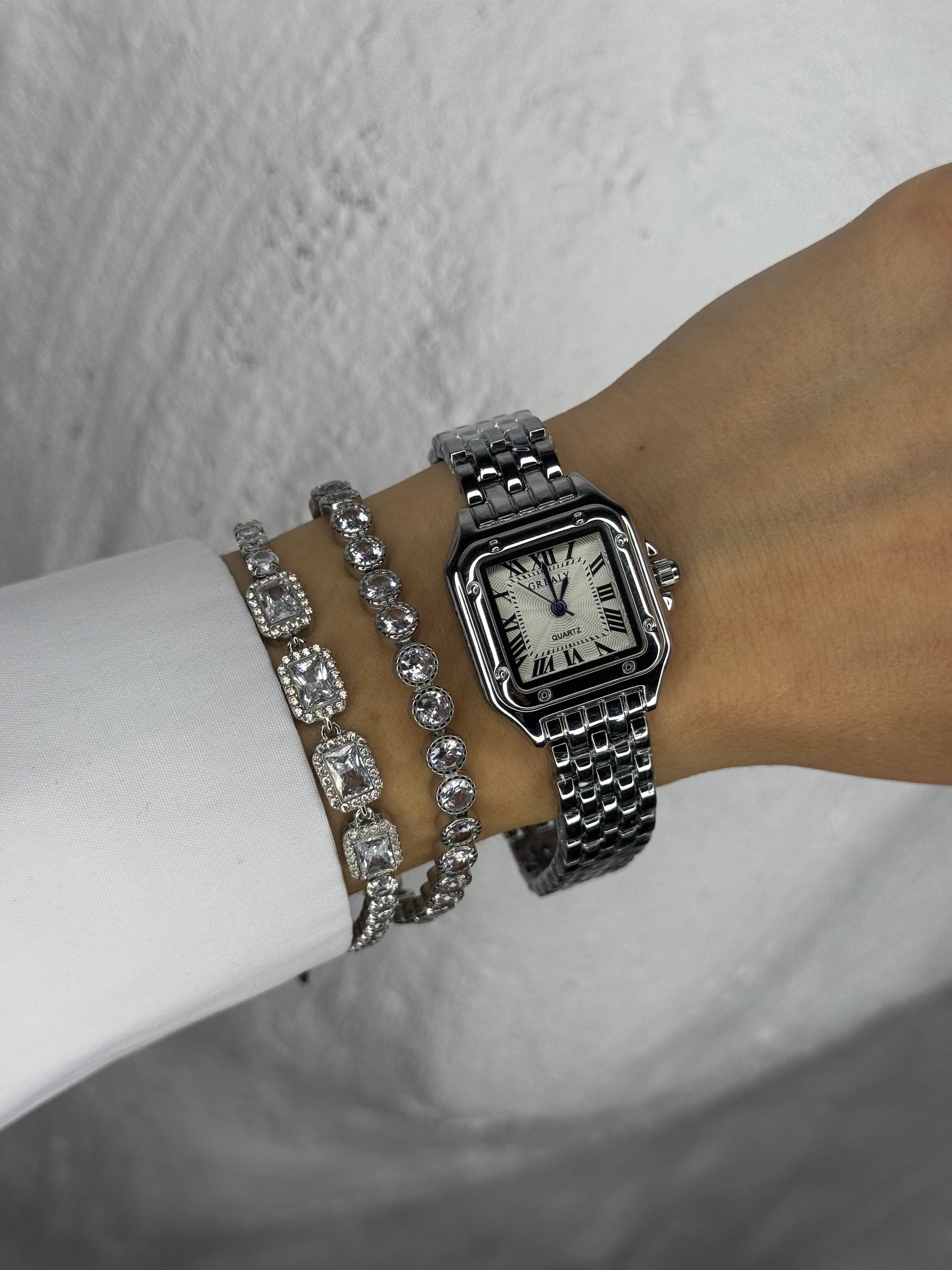 Το AMÉLIE STEEL αποπνέει τη γοητεία του κλασικού με μια σύγχρονη, εκλεπτυσμένη ματιά. Το τετράγωνο πλαίσιο με ρωμαϊκούς αριθμούς και λεπτομέρειες από ατσάλι δημιουργεί μια ισορροπία ανάμεσα στην κομψότητα και τη δύναμη. Το μπρασελέ του προσφέρει άνεση και λάμψη, ενώ το διαχρονικό του σχέδιο το καθιστά ιδανικό για κάθε περίσταση.