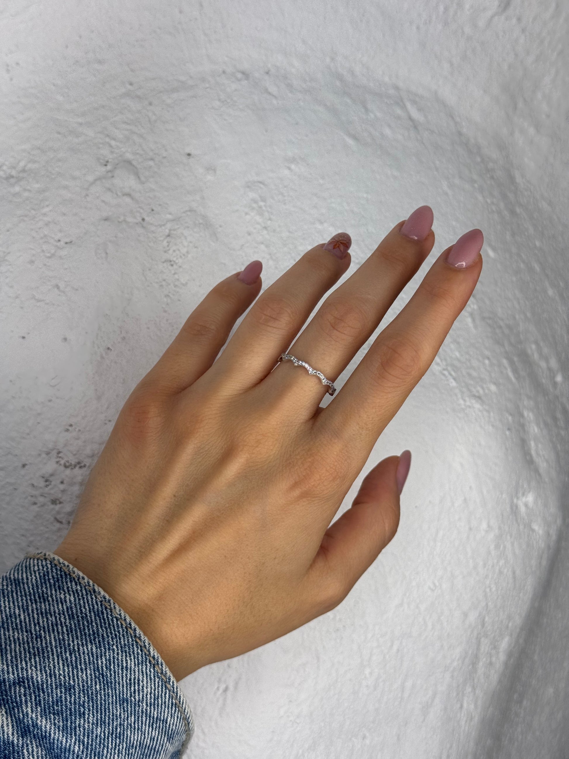 Το Aria Wave ξεχωρίζει με τη διακριτική κυματιστή του γραμμή και τη λεπτή του λάμψη. Ένα δαχτυλίδι που αποπνέει φινέτσα και θηλυκότητα, ιδανικό για layering ή για να φορεθεί μόνο του ως elegant statement κομμάτι.
