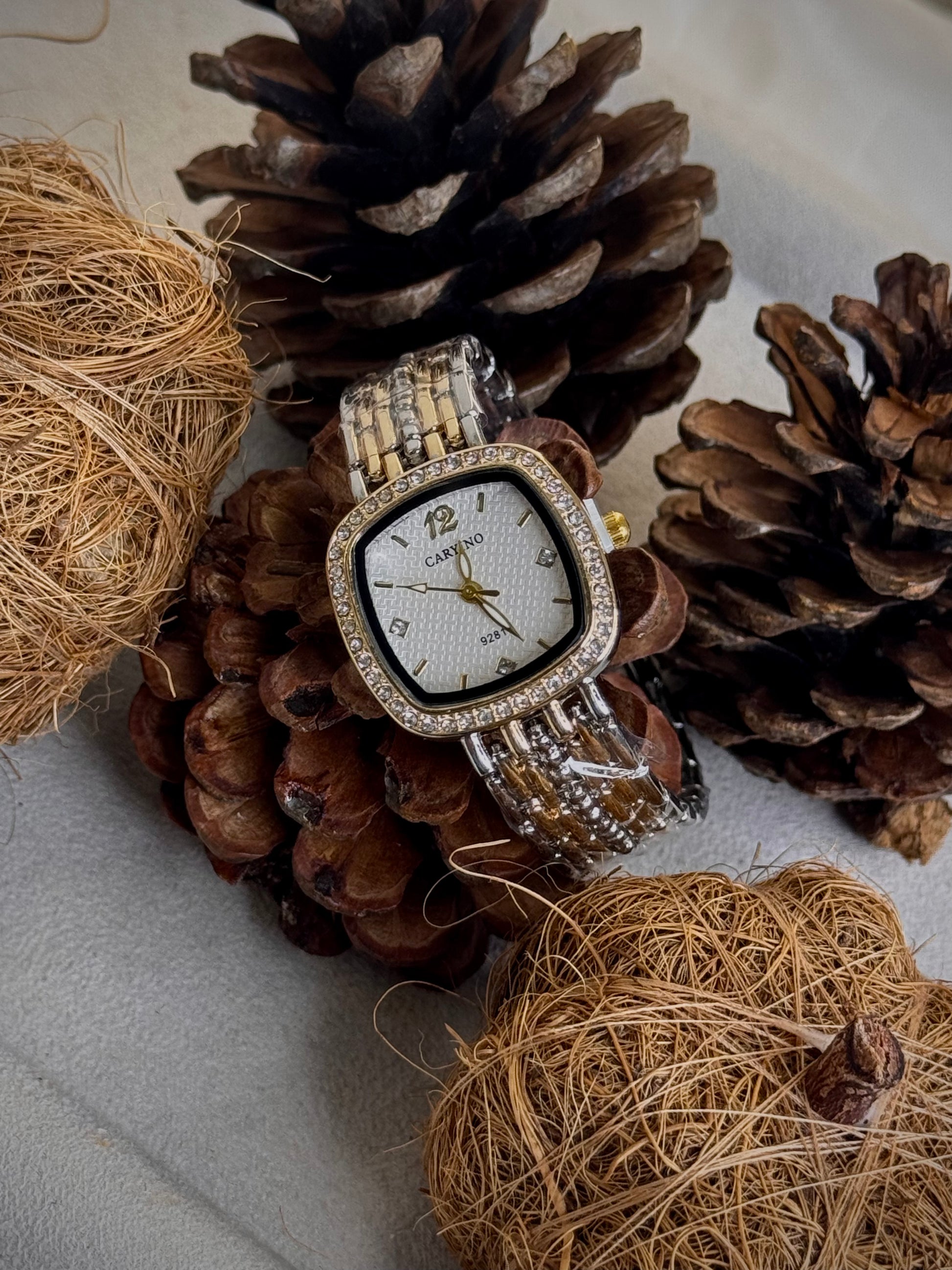 Το AUREA Duo ενώνει δύο κόσμους, τη θερμή λάμψη του χρυσού και τη δροσερή καθαρότητα του ασημιού. Το δίχρωμο μπρασελέ του και το ανοιχτό καντράν προσφέρουν έναν συνδυασμό που ξεχωρίζει για τη φινέτσα του.