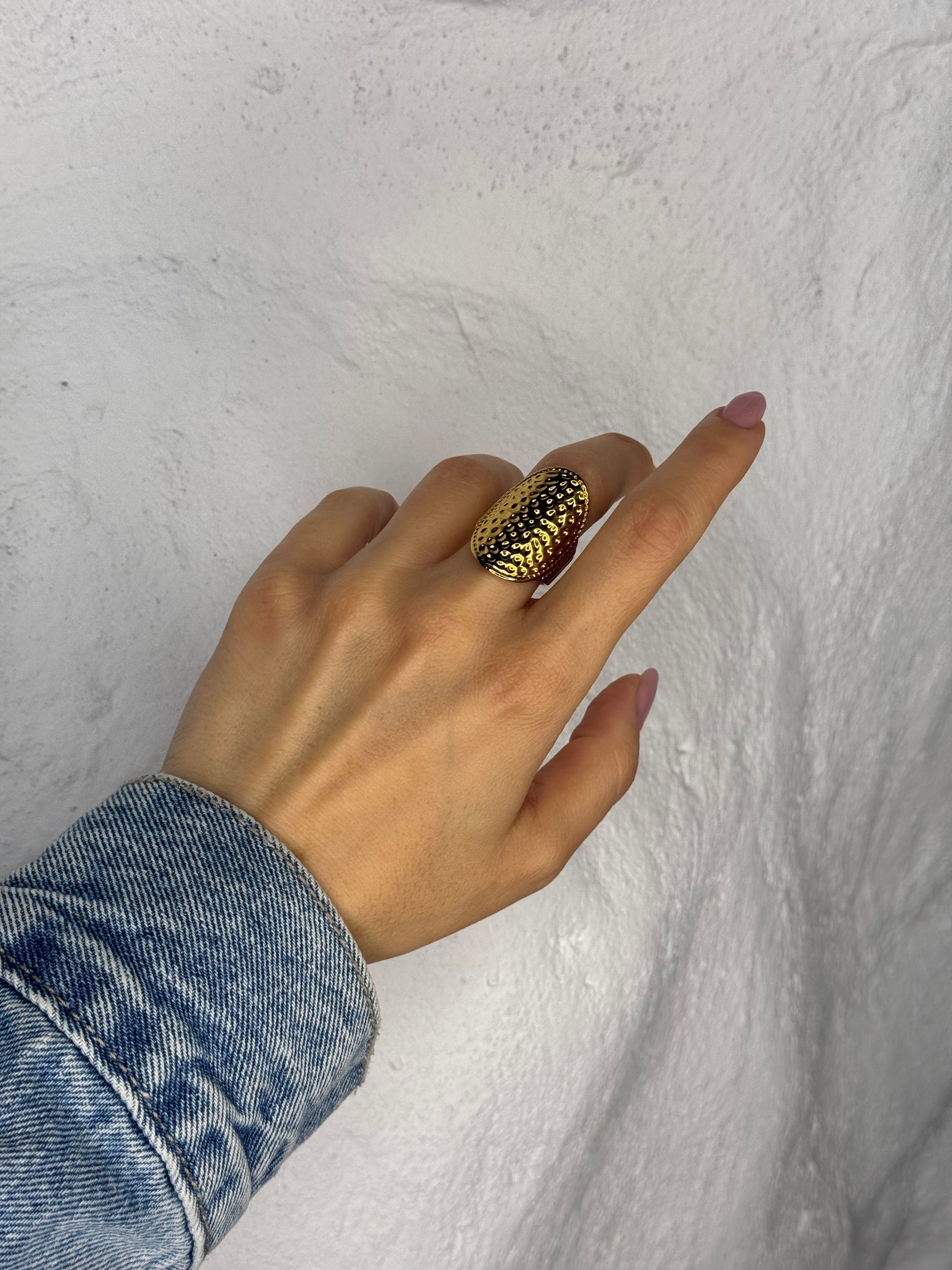 Το Aurora Dome είναι ένα statement κομμάτι που αποπνέει δύναμη και πολυτέλεια. Με τον ανάγλυφο μεταλλικό του σχεδιασμό και τη γεμάτη φόρμα του, προσφέρει μια bold και εκλεπτυσμένη αισθητική που δεν περνά απαρατήρητη. Ιδανικό για γυναίκες που αγαπούν τα εντυπωσιακά, καλλιτεχνικά κοσμήματα που ολοκληρώνουν το look με αυτοπεποίθηση.