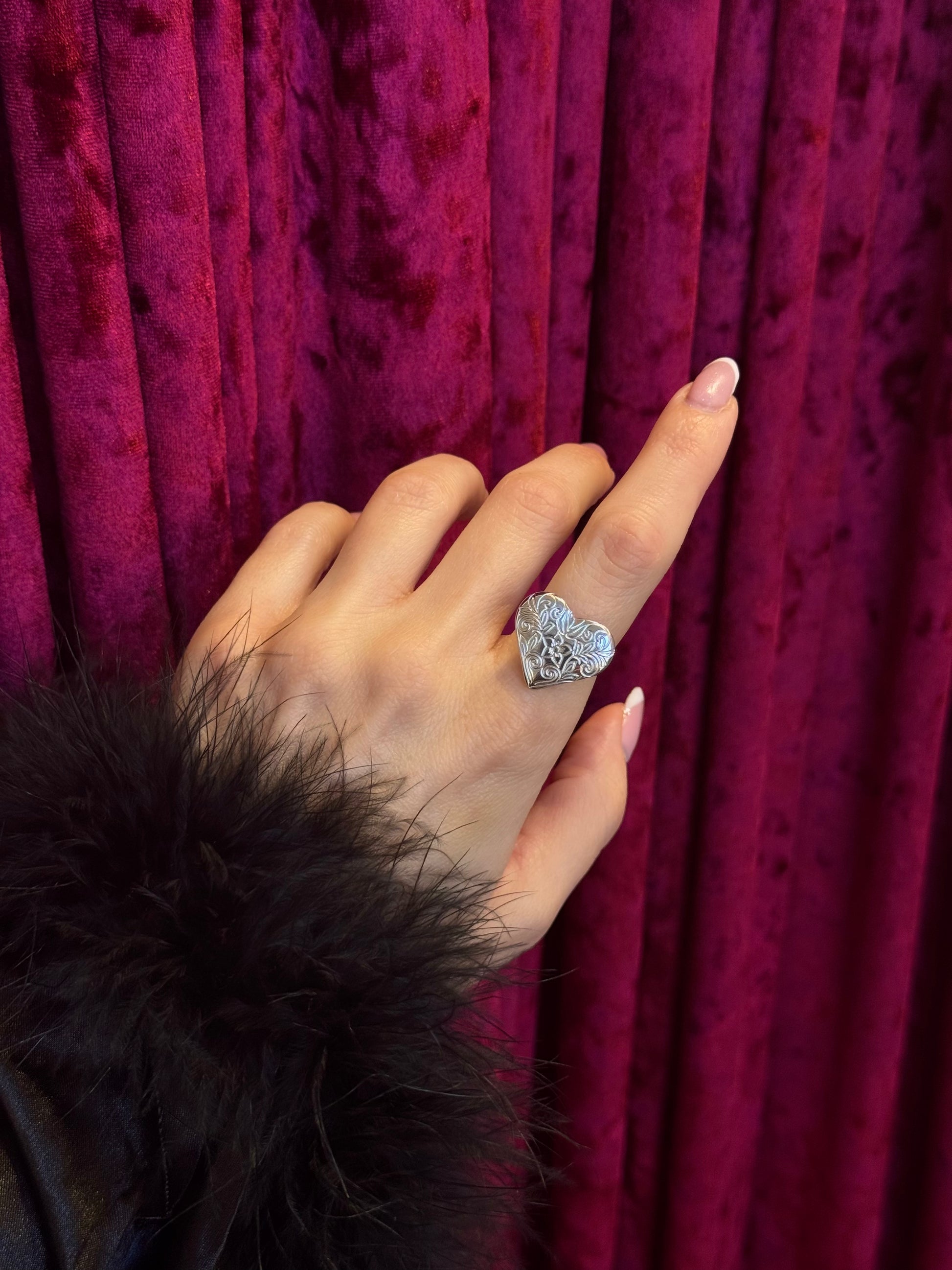 Το Baroque Heart είναι ένα δαχτυλίδι που ενώνει την τρυφερότητα της καρδιάς με τη μεγαλοπρέπεια της baroque τέχνης. Οι ανάγλυφες λεπτομέρειες δημιουργούν ένα παιχνίδι φωτός και σκιάς, μετατρέποντας το κόσμημα σε μικρό γλυπτό πάνω στο χέρι. Ένα statement κομμάτι για όσες αγαπούν την κομψότητα με χαρακτήρα.