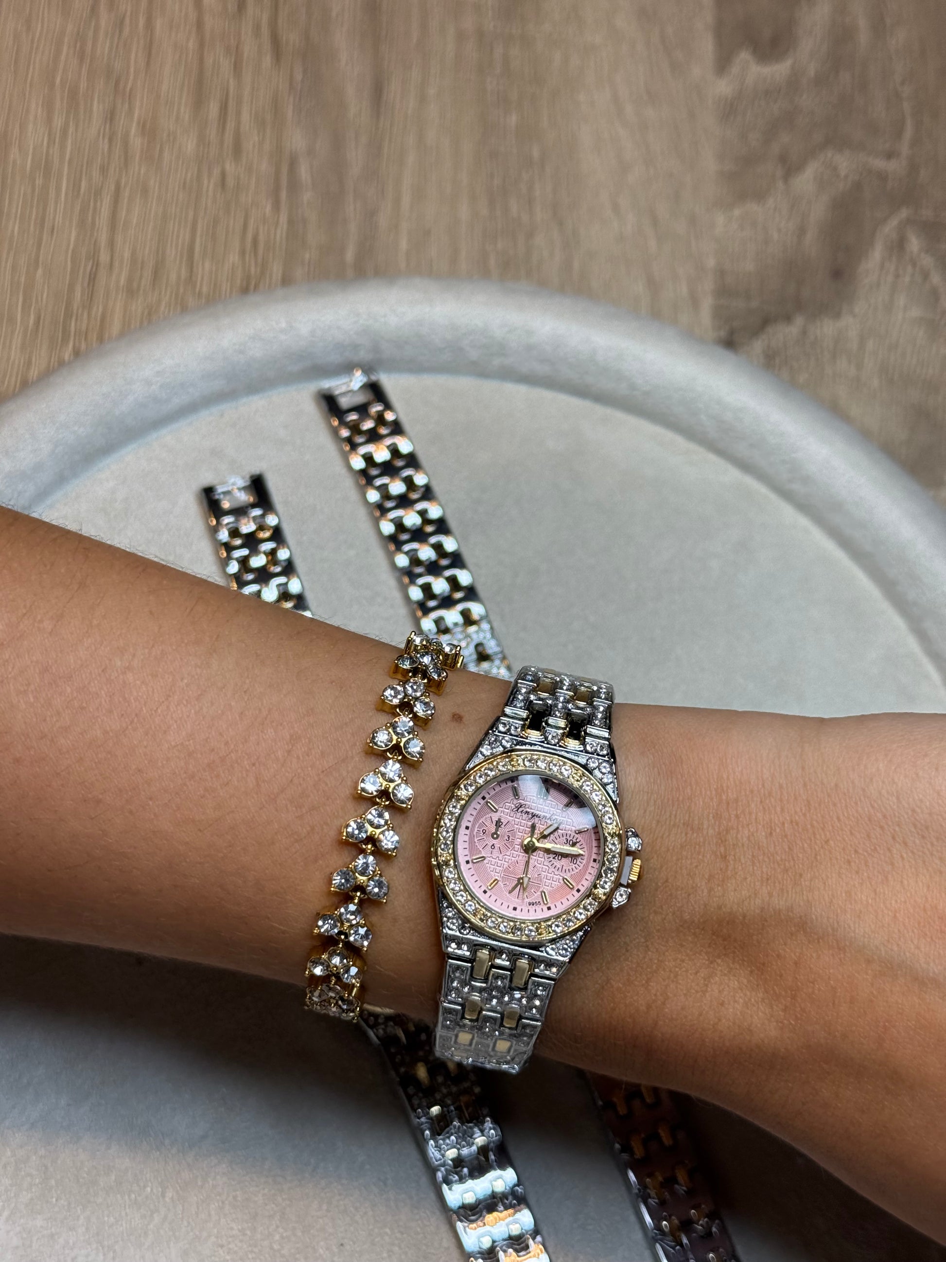 Το Bella Steel – Ροζ Χρυσό Ασημί Ατσάλινο Ρολόι είναι η απόλυτη ένωση κομψότητας και θηλυκότητας. Με μπρασελέ από ανθεκτικό ατσάλι σε διχρωμία χρυσού–ασημί και εκθαμβωτικό ροζ καντράν, στολισμένο με λαμπερές πέτρες, προσφέρει λάμψη και στυλ σε κάθε σου εμφάνιση.
