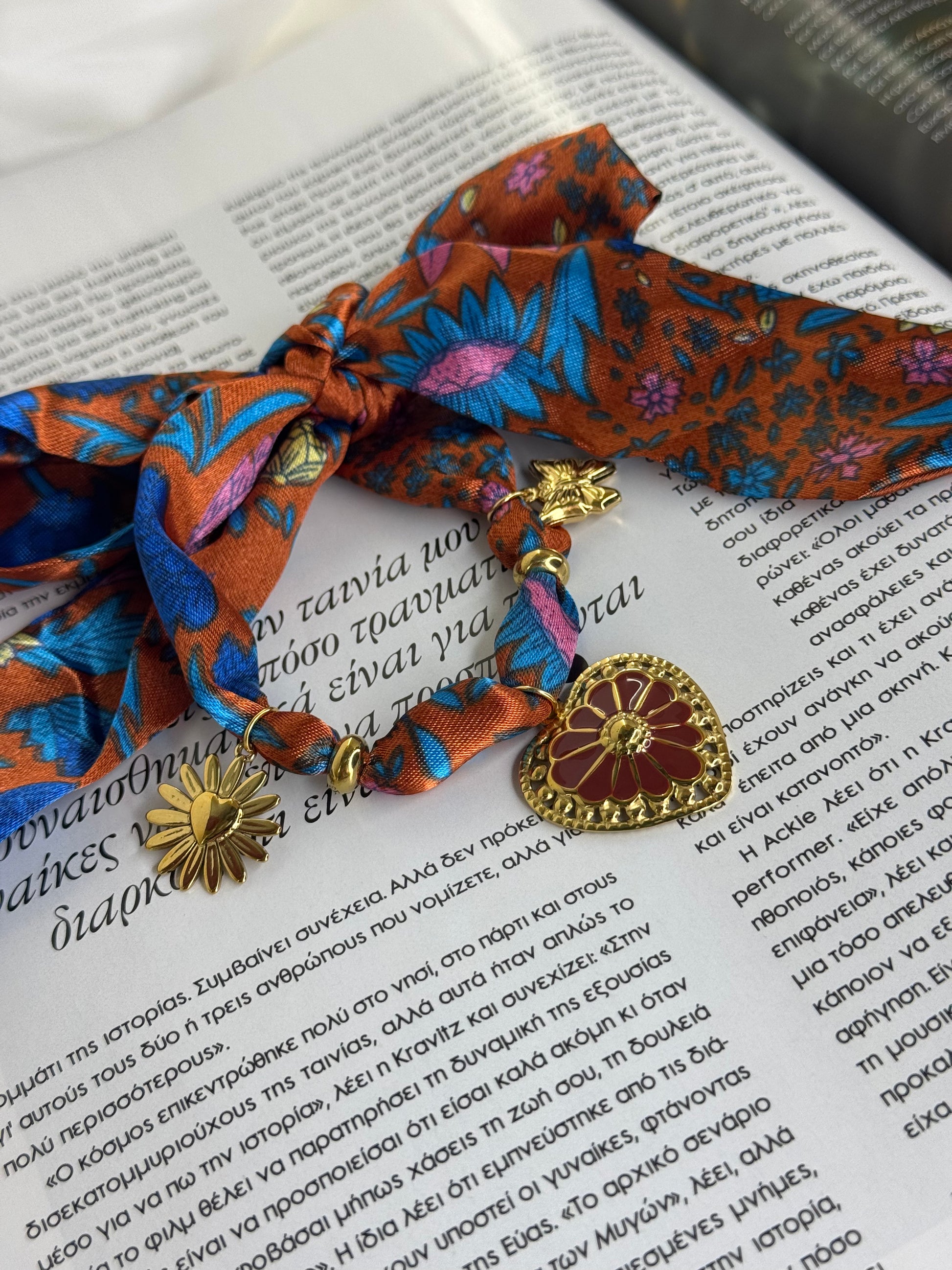 Bohemian Whisper — Βραχιόλι με φουλάρι & χρυσά charms