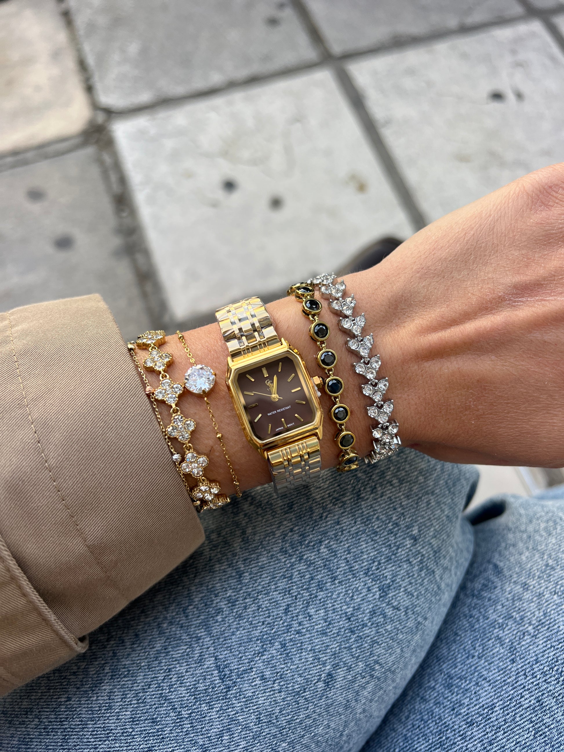 Η διαχρονική κομψότητα παίρνει ζεστή απόχρωση. Το Cocoa Grace συνδυάζει το βαθύ καφέ καντράν με το χρυσό μπρασελέ, δημιουργώντας έναν refined συνδυασμό που αποπνέει πολυτέλεια και αυτοπεποίθηση. Ένα ρολόι που ταιριάζει σε κάθε εποχή και κάθε στυλ.