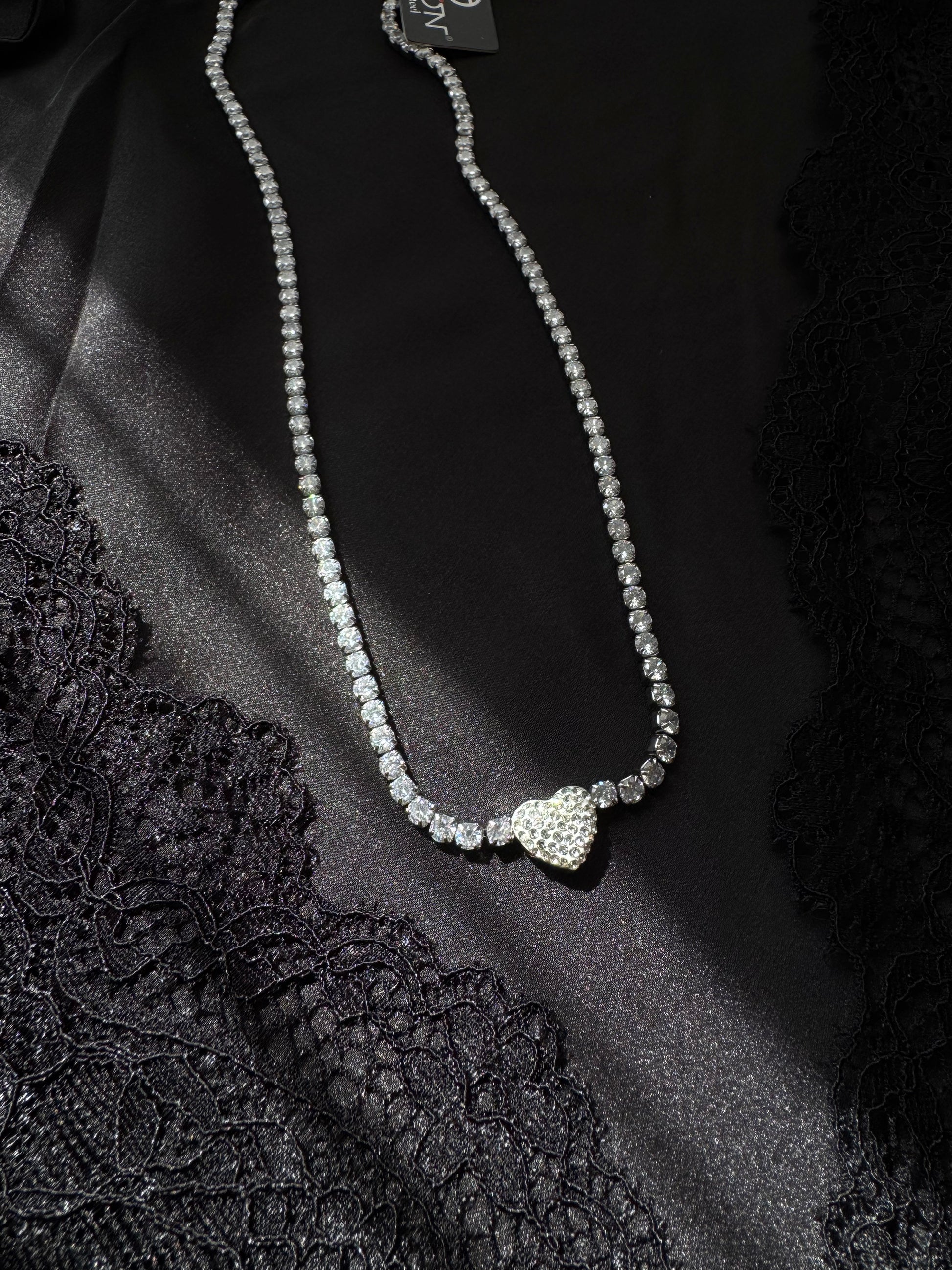 Cœur Doré - ατσάλινο ασημί κολιέ με ζιργκόν πέτρες