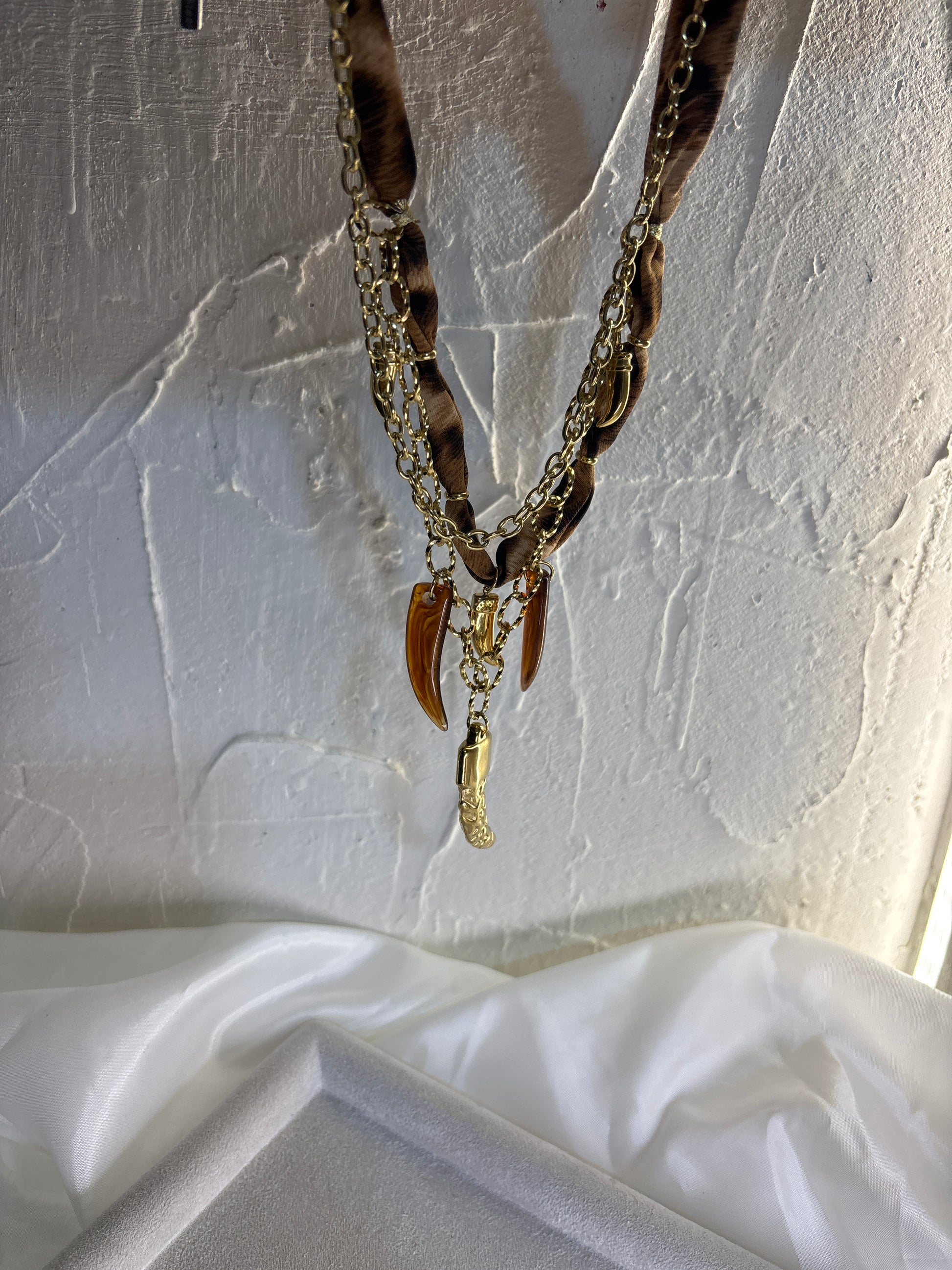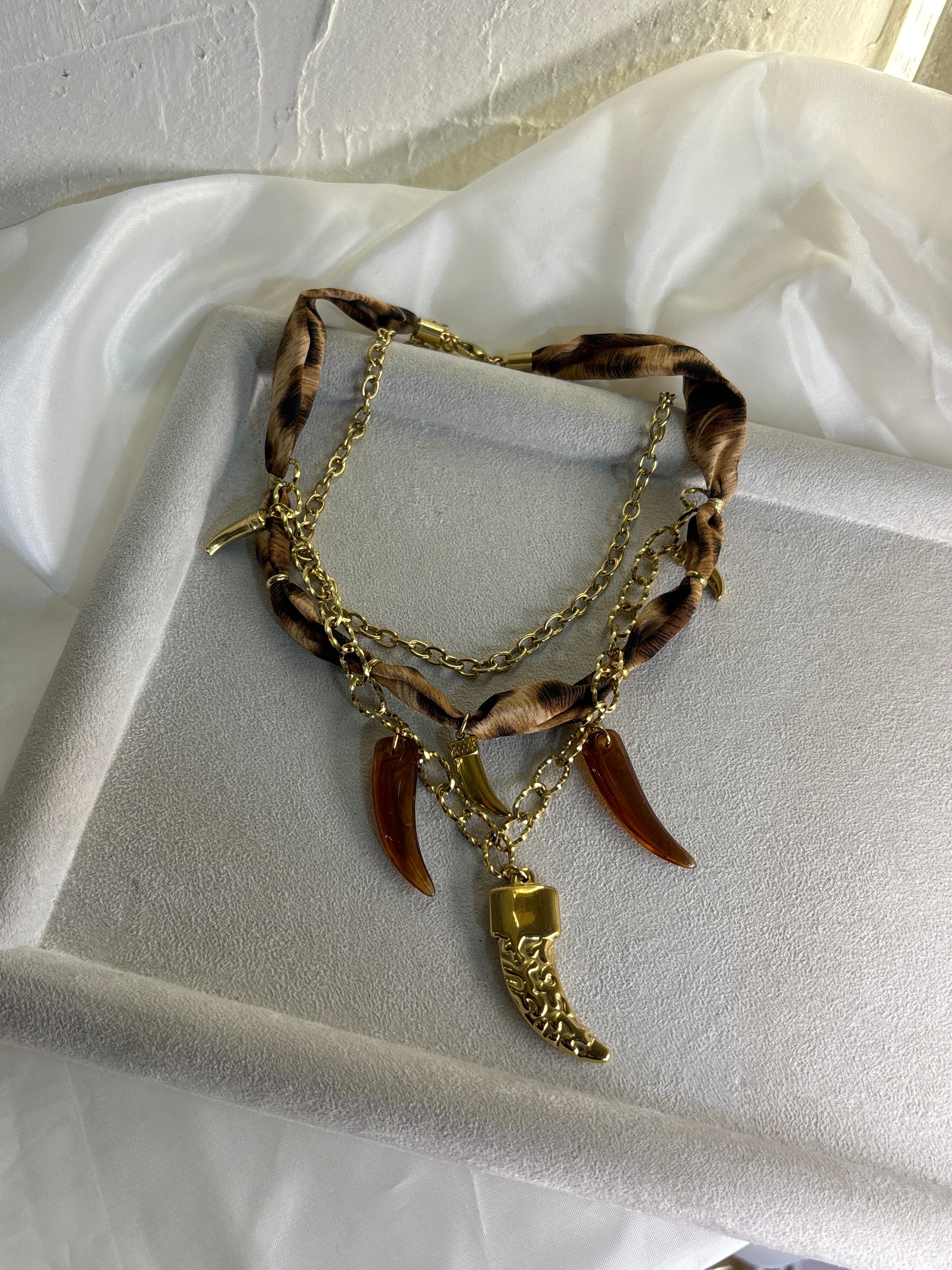 Velours Chain — Βραχιόλι με φουλάρι & χρυσή αλυσίδα