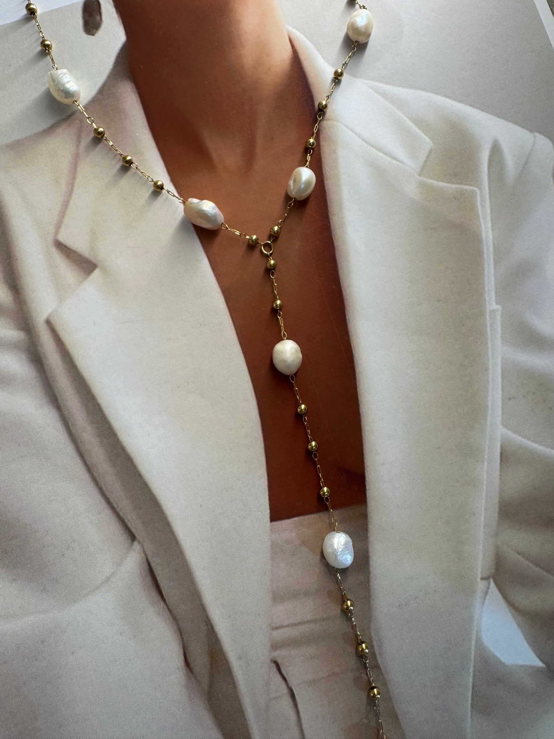CRAVATE DE PERLES – Χρυσό Κολιέ με Πέρλες stainless steel