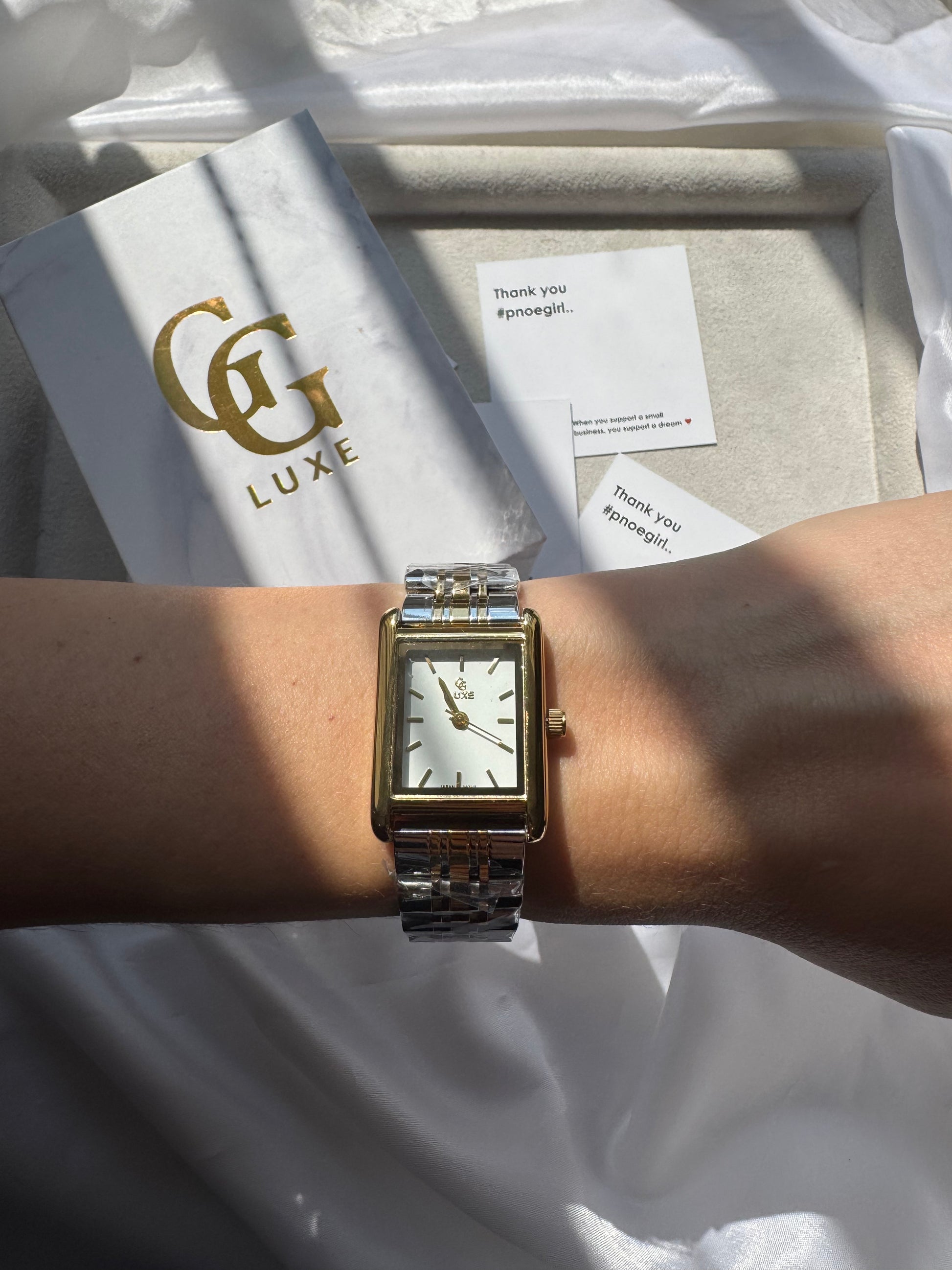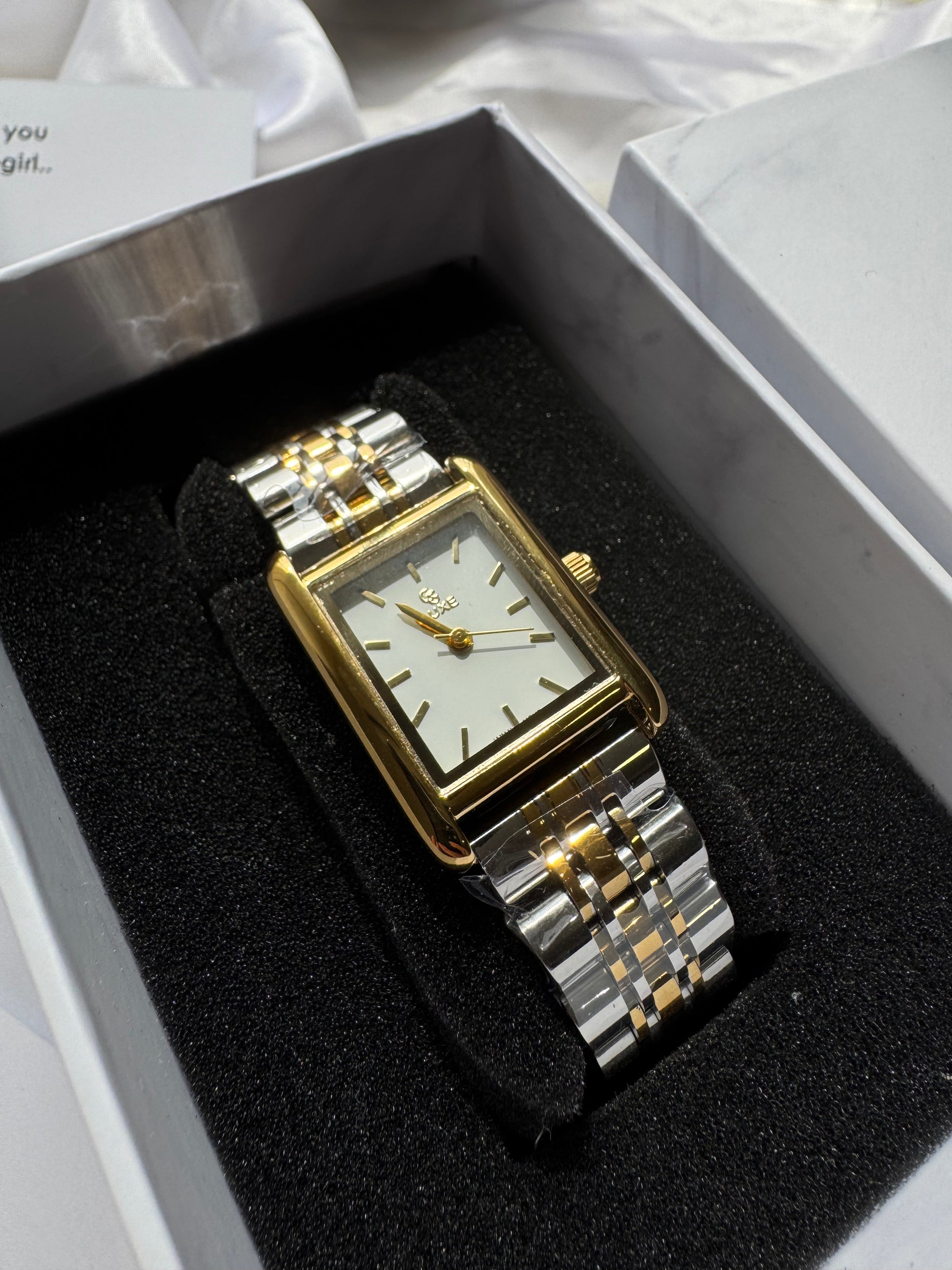 Το Élégance Bicolore ισορροπεί ανάμεσα στην κομψότητα και τη μοντέρνα φινέτσα. Το λευκό καντράν πλαισιώνεται από χρυσές λεπτομέρειες, ενώ το δίχρωμο μπρασελέ ασημί–χρυσό προσφέρει ευελιξία και στιλ. Ένα ρολόι που προσαρμόζεται σε κάθε look, αναδεικνύοντας τη διαχρονικότητα με σύγχρονη αύρα.