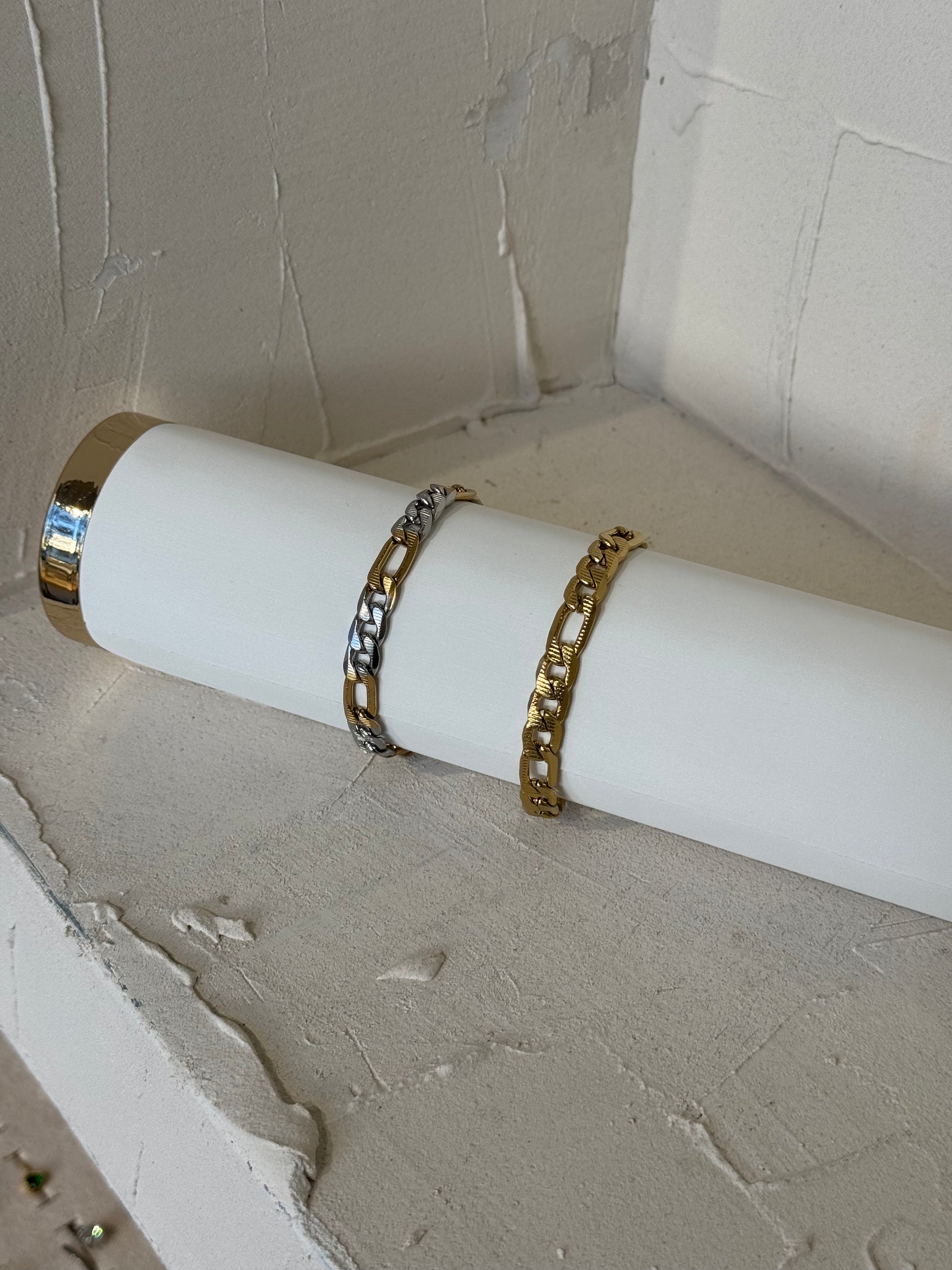 Ένα διαχρονικό σχέδιο με μια μοντέρνα πινελιά. Η ανάγλυφη υφή στους κρίκους προσθέτει βάθος και χαρακτήρα, κάνοντας αυτό το βραχιόλι την τέλεια επιλογή για όσους αναζητούν την κλασική κομψότητα με μια δόση πολυτέλειας.
