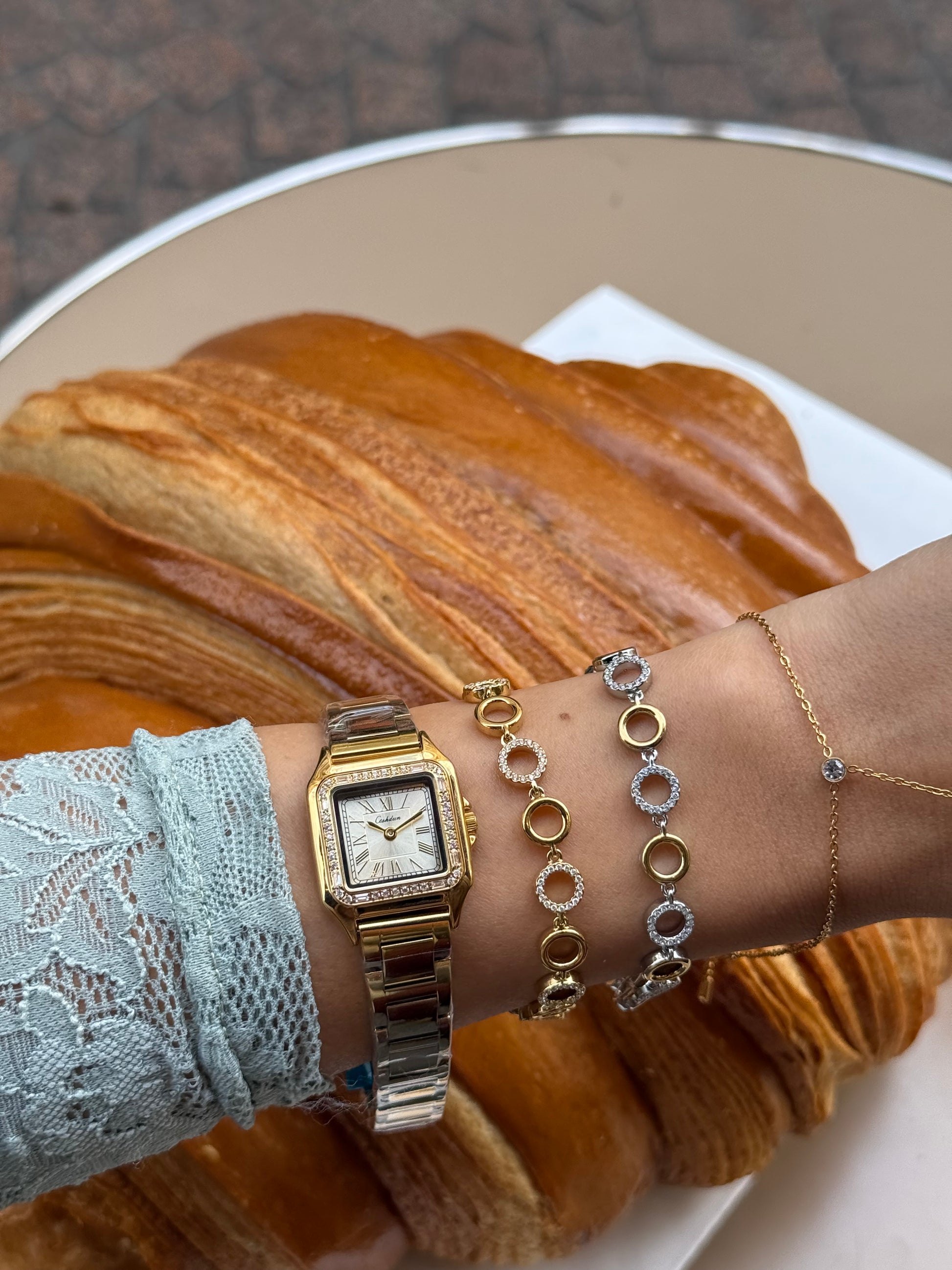 Το Emily in Paris είναι η επιτομή της θηλυκότητας και του στυλ, με τετράγωνο καντράν που ξεχωρίζει, πλαίσιο διακοσμημένο με λαμπερές πέτρες και design που παντρεύει το κλασικό με το μοντέρνο.