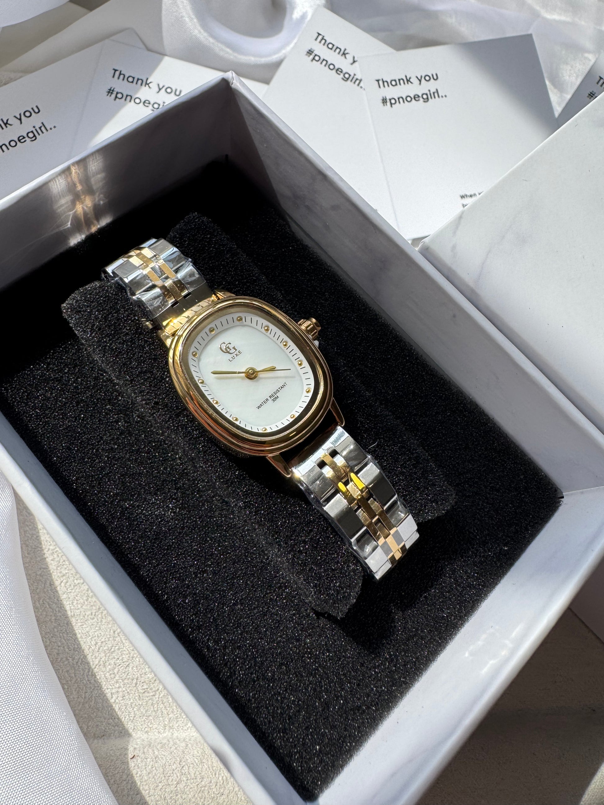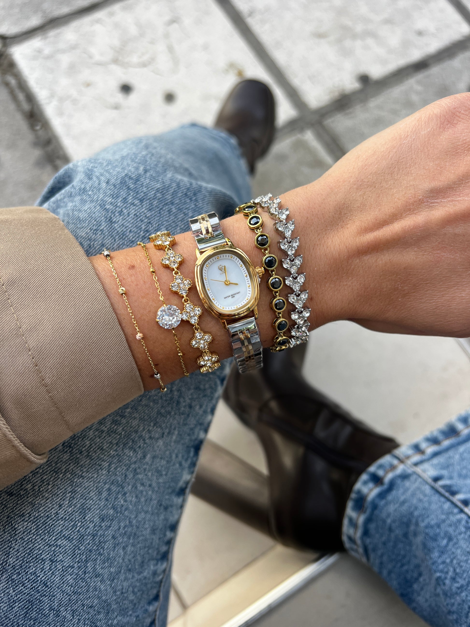 Το Étoile Blanche αποπνέει καθαρότητα και διαχρονική κομψότητα. Το λευκό καντράν ενισχύει τη minimal αισθητική, ενώ το δίχρωμο μπρασελέ ασημί–χρυσό χαρίζει ισορροπία και αρμονία. Ένα ρολόι που ταιριάζει σε κάθε εμφάνιση, καθημερινή ή επίσημη.