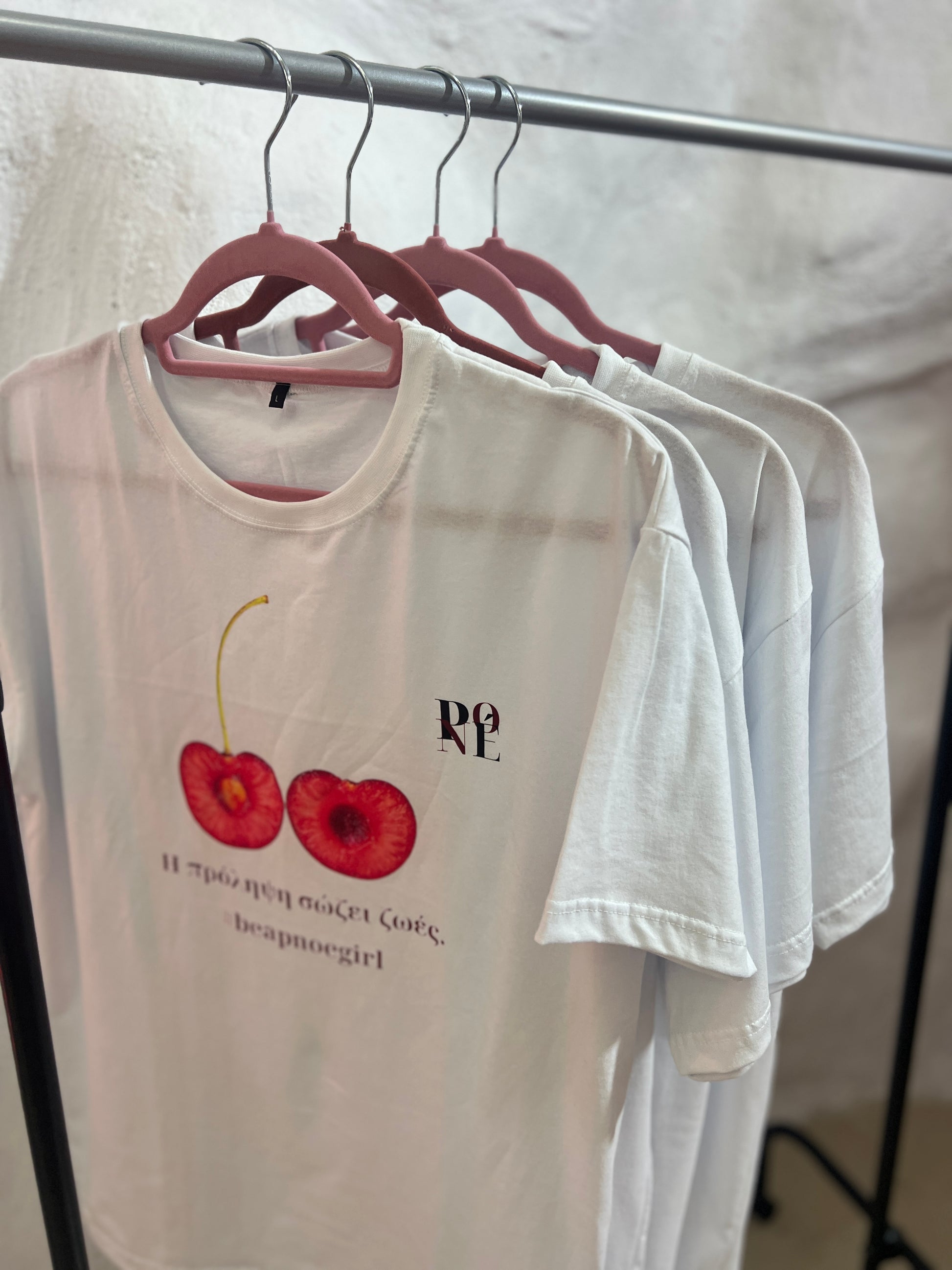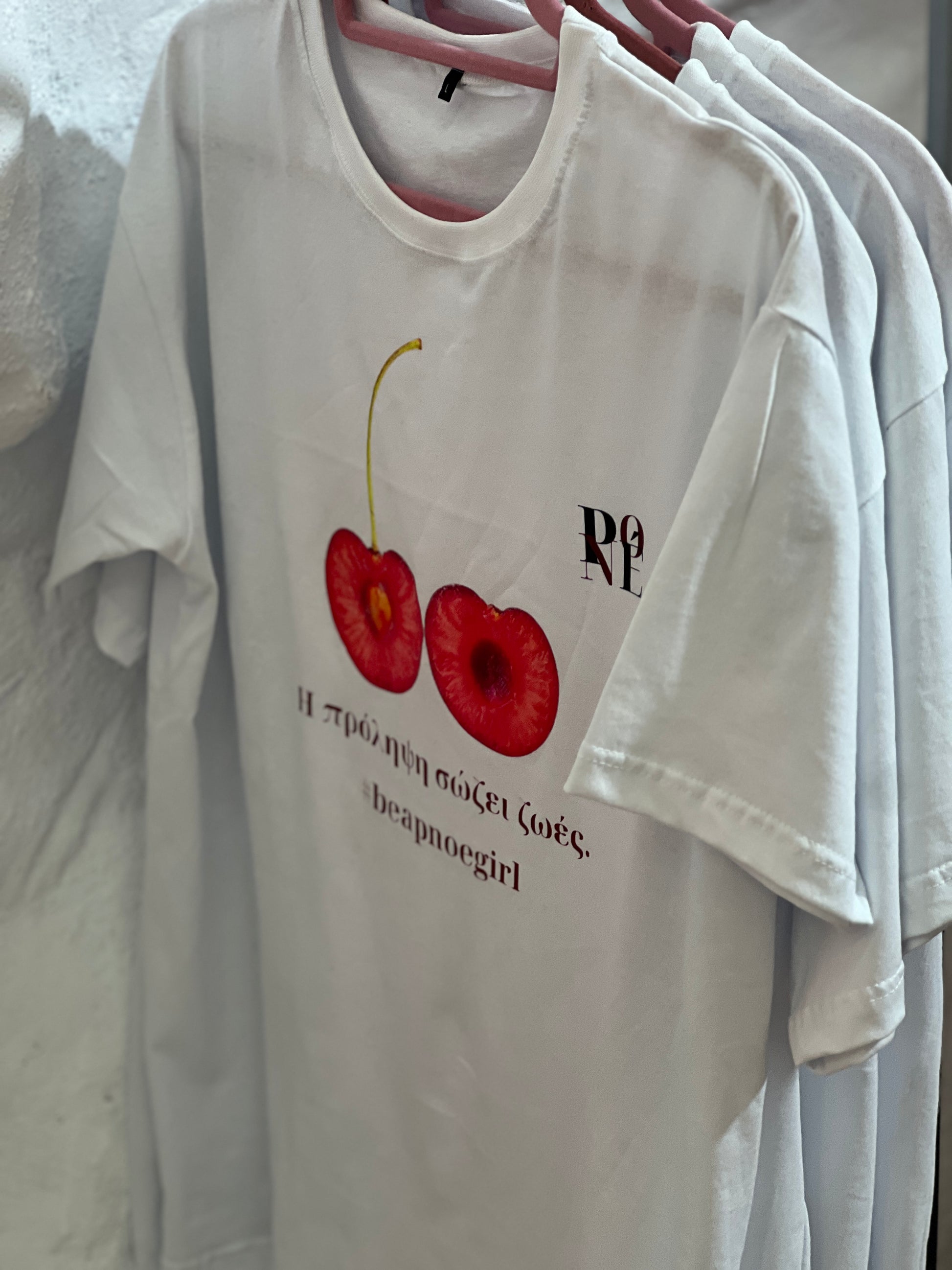 Η μπλούζα δημιουργήθηκε με έναν σκοπό, να υπενθυμίζει πως η πρόληψη σώζει ζωές. Το χαρακτηριστικό print με τα κεράσια και το μήνυμα συμβολίζουν τη γυναικεία δύναμη, τη φροντίδα και την αγάπη για τον εαυτό μας. Ένα statement κομμάτι που δεν είναι απλώς ρούχο, είναι μήνυμα ζωής.