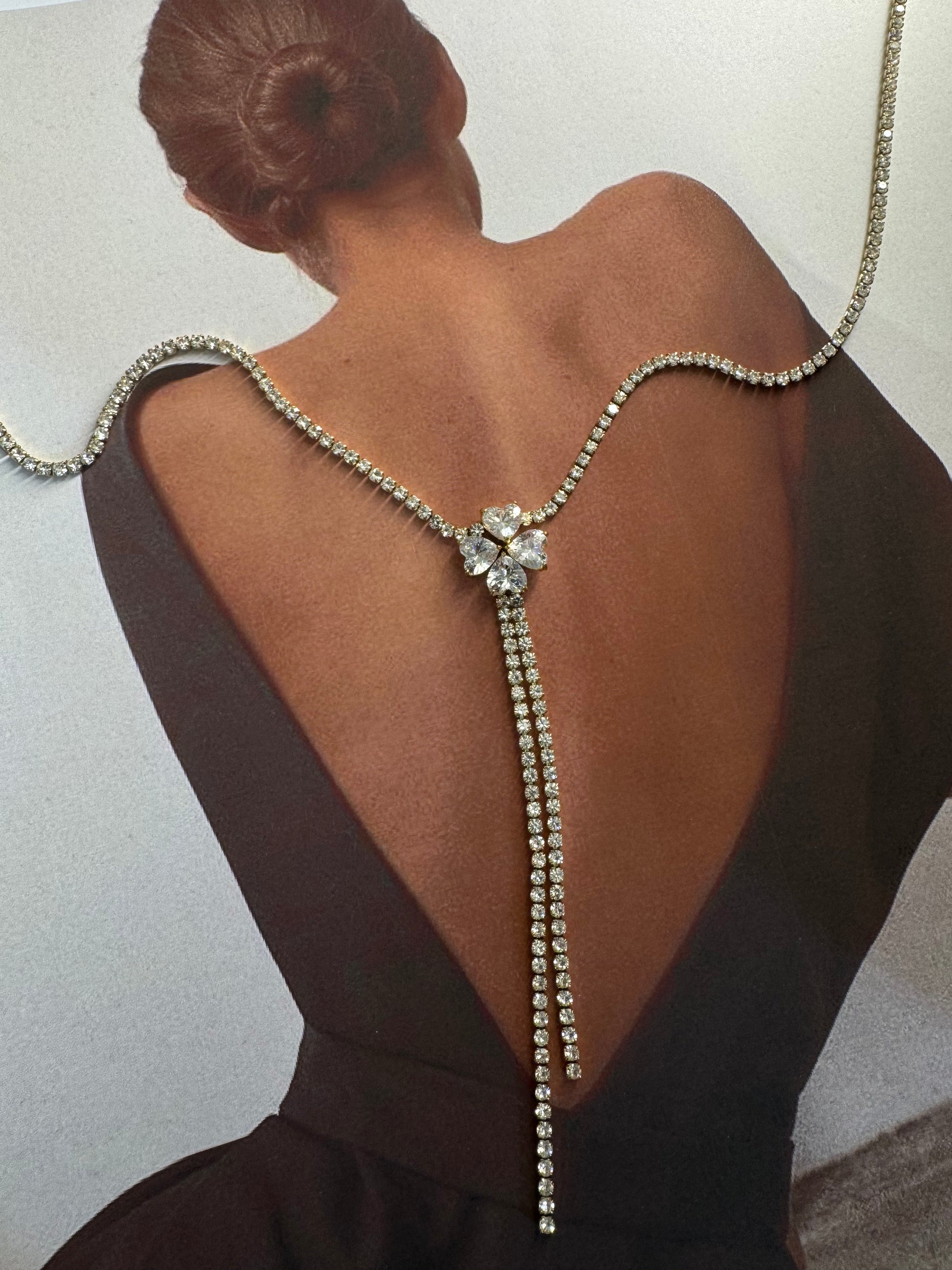 Ένα κολιέ που ακτινοβολεί φως σε κάθε του σημείο. Ολόκληρη η αλυσίδα είναι επενδυμένη με λαμπερά ζιργκόν, δημιουργώντας ένα αποτέλεσμα απόλυτης πολυτέλειας. Το τετράφυλλο τριφύλλι στο κέντρο, επίσης διακοσμημένο με ζιργκόν, χαρίζει μία αίσθηση τύχης και κομψότητας, κάνοντάς το μοναδικό.