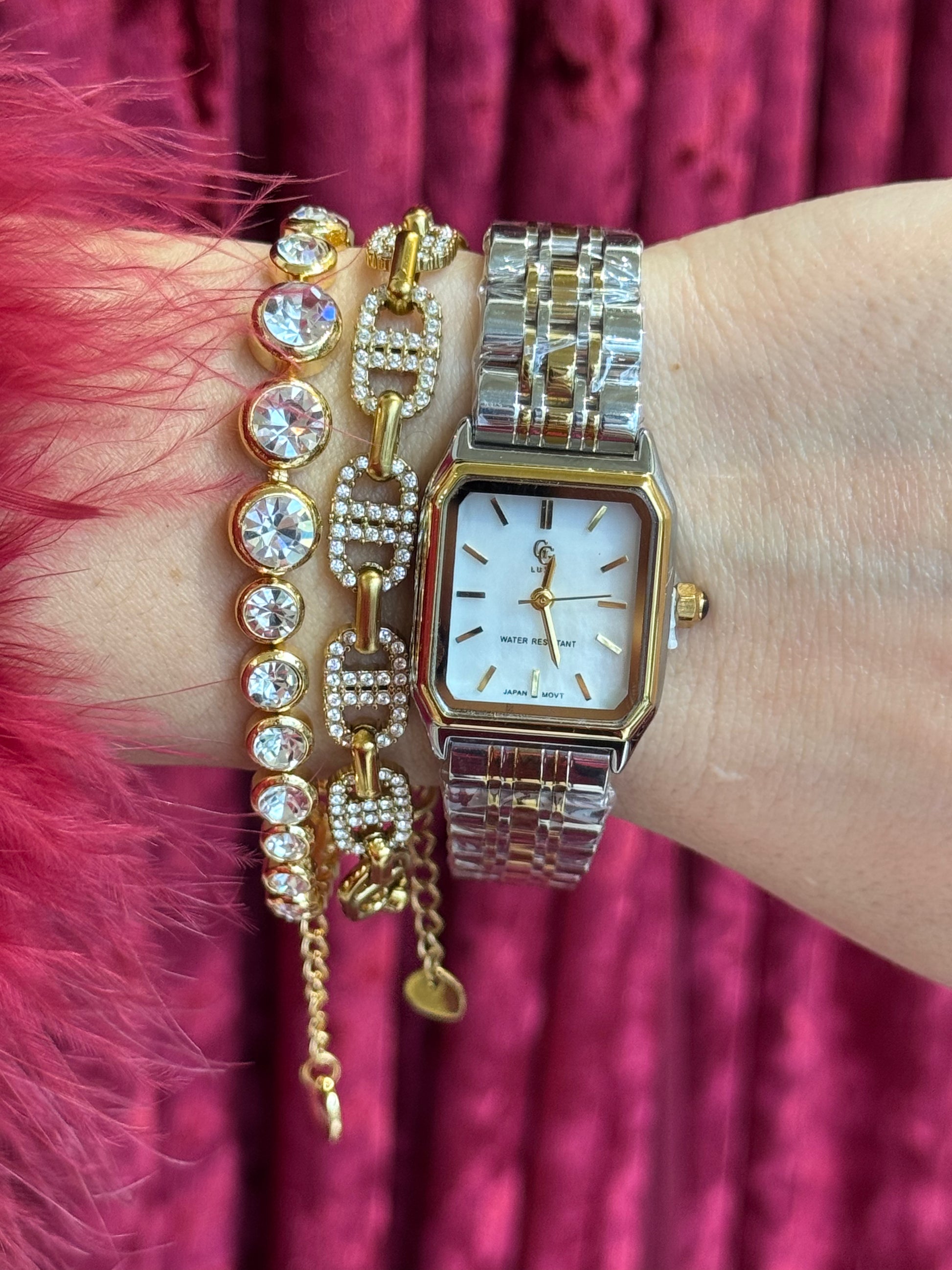 Το Frost Pearl είναι η επιτομή της χιονισμένης κομψότητας, ένα ρολόι που αποπνέει καθαρό φως, σαν τις πρώτες νιφάδες που ακουμπούν πάνω σε χρυσή επιφάνεια. Με οκτάγωνη κάσα διχρωμίας, φίνα κρυσταλλάκια περιμετρικά και περλέ καντράν που λάμπει διακριτικά, δίνει στον καρπό μια αύρα γιορτινής πολυτέλειας.