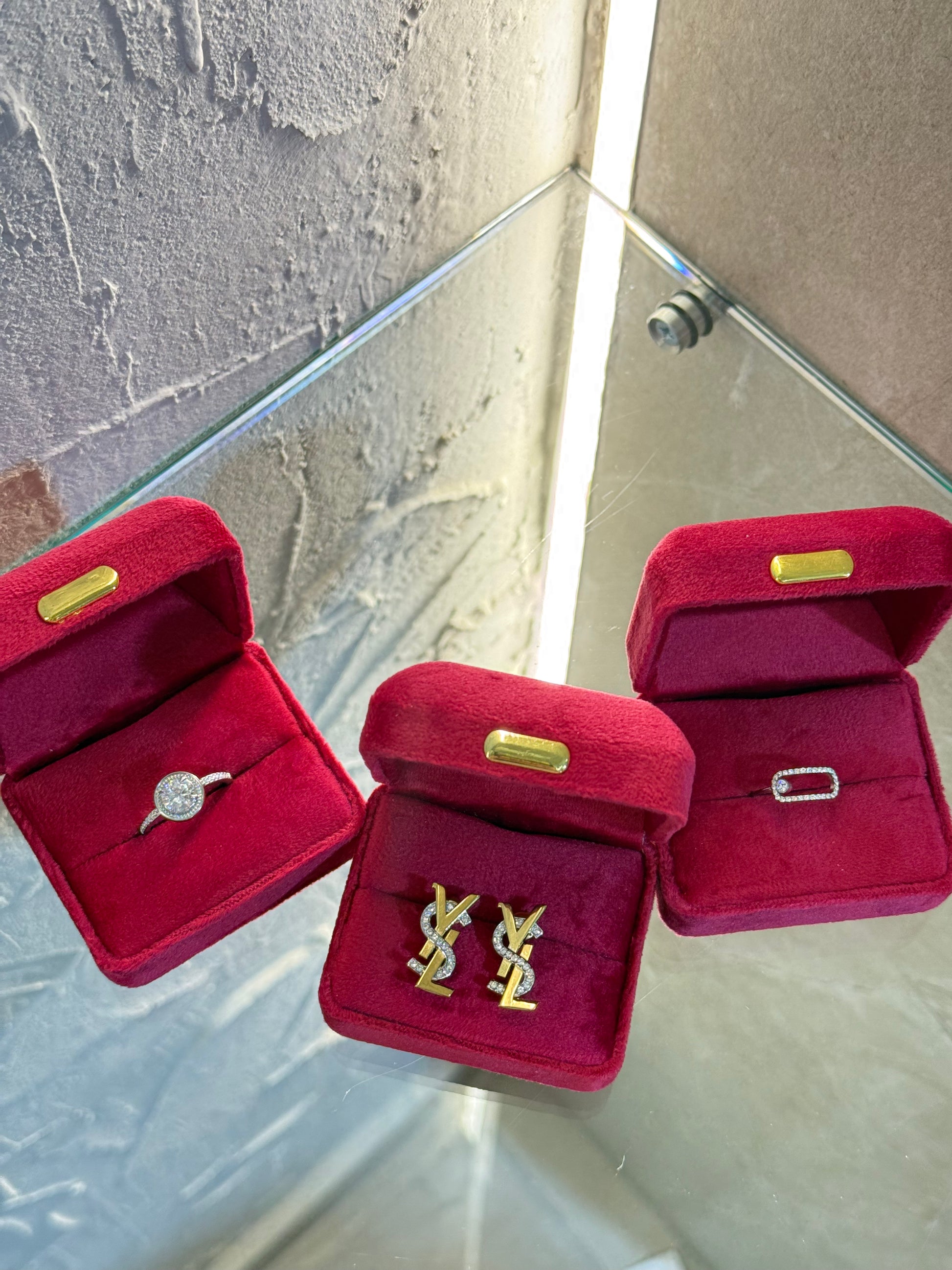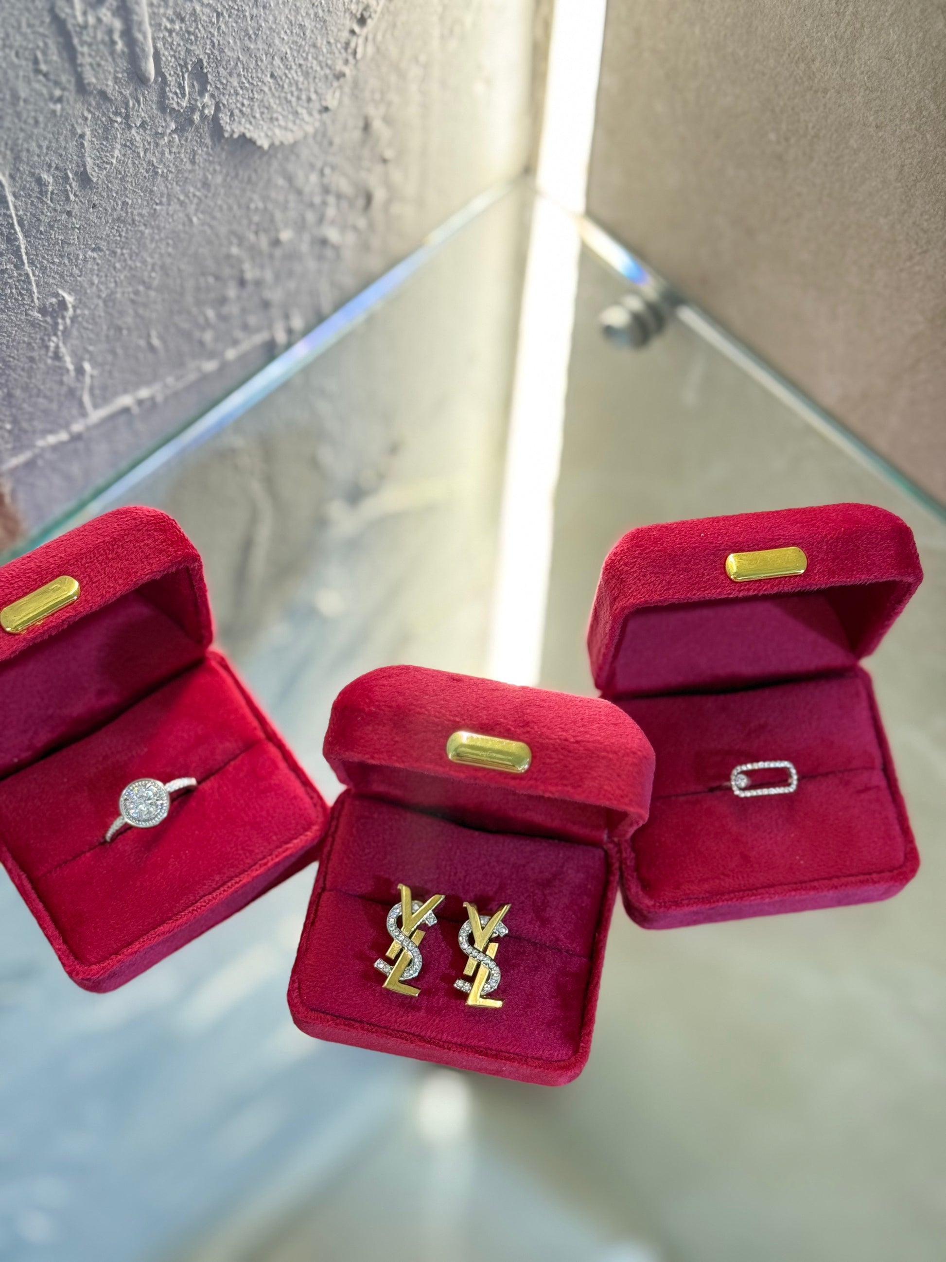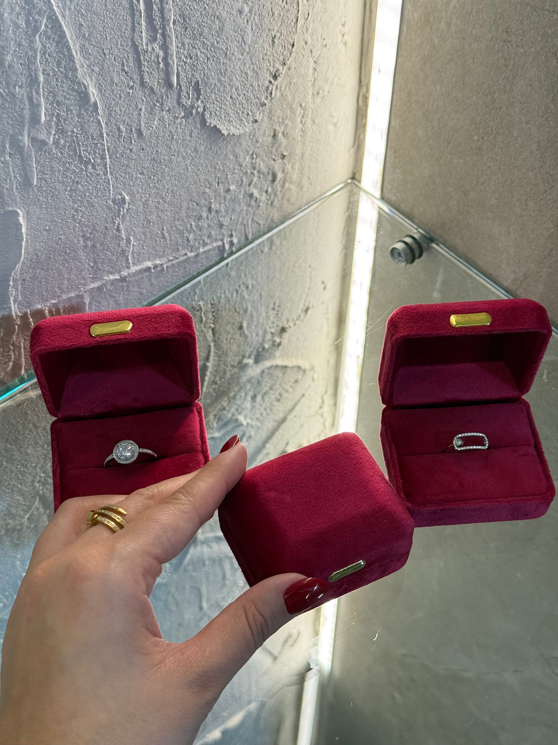 Αποθηκεύστε και παρουσιάστε τα αγαπημένα σας δαχτυλίδια και σκουλαρίκια με αυτή την εκλεπτυσμένη βελούδινη θήκη σε έντονο κόκκινο χρώμα. Η απαλή υφή του βελούδου χαρίζει αίσθηση πολυτέλειας, ενώ η κομψή λευκή επένδυση στο εσωτερικό προστατεύει και αναδεικνύει κάθε λεπτομέρεια του κοσμήματος.