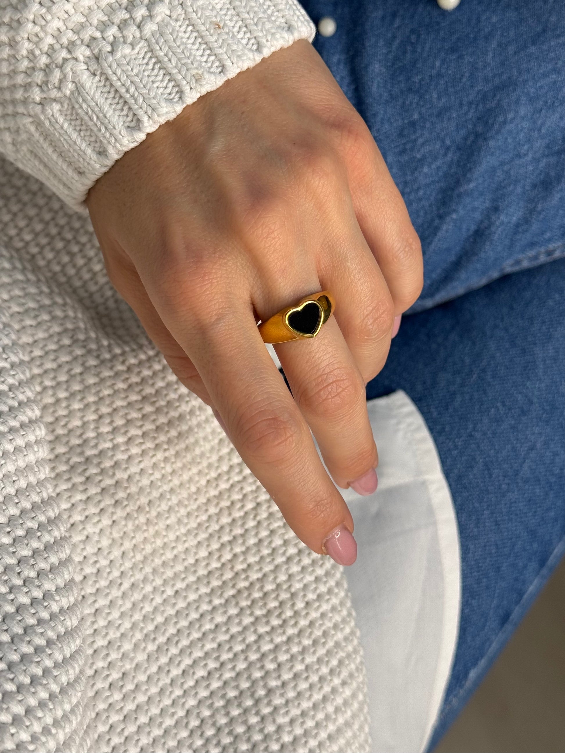 Gold Midnight Heart-δαχτυλίδι stainless steel