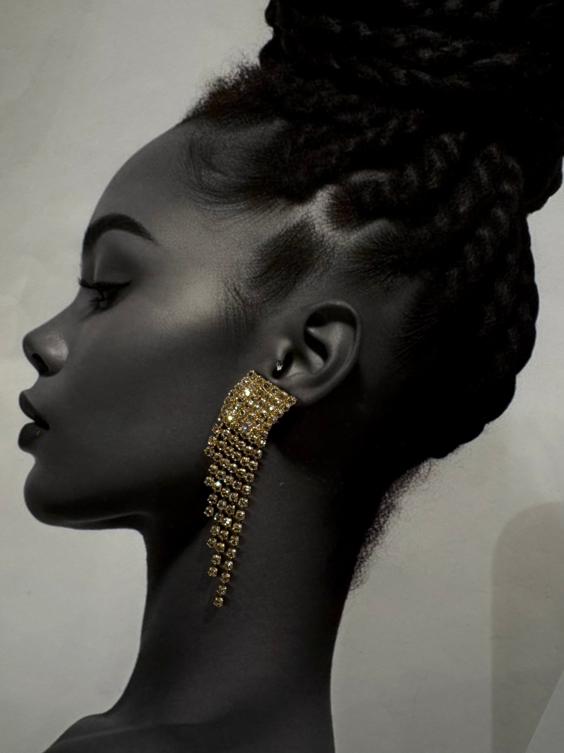 Το Golden Cascades είναι η επιτομή της high-fashion λάμψης. Ένα εντυπωσιακό waterfall σχέδιο με χρυσαφένιες πέτρες που κατεβαίνουν σε πολλαπλές σειρές, δημιουργώντας κίνηση, φως και μια αύρα που θυμίζει haute couture πασαρέλα.