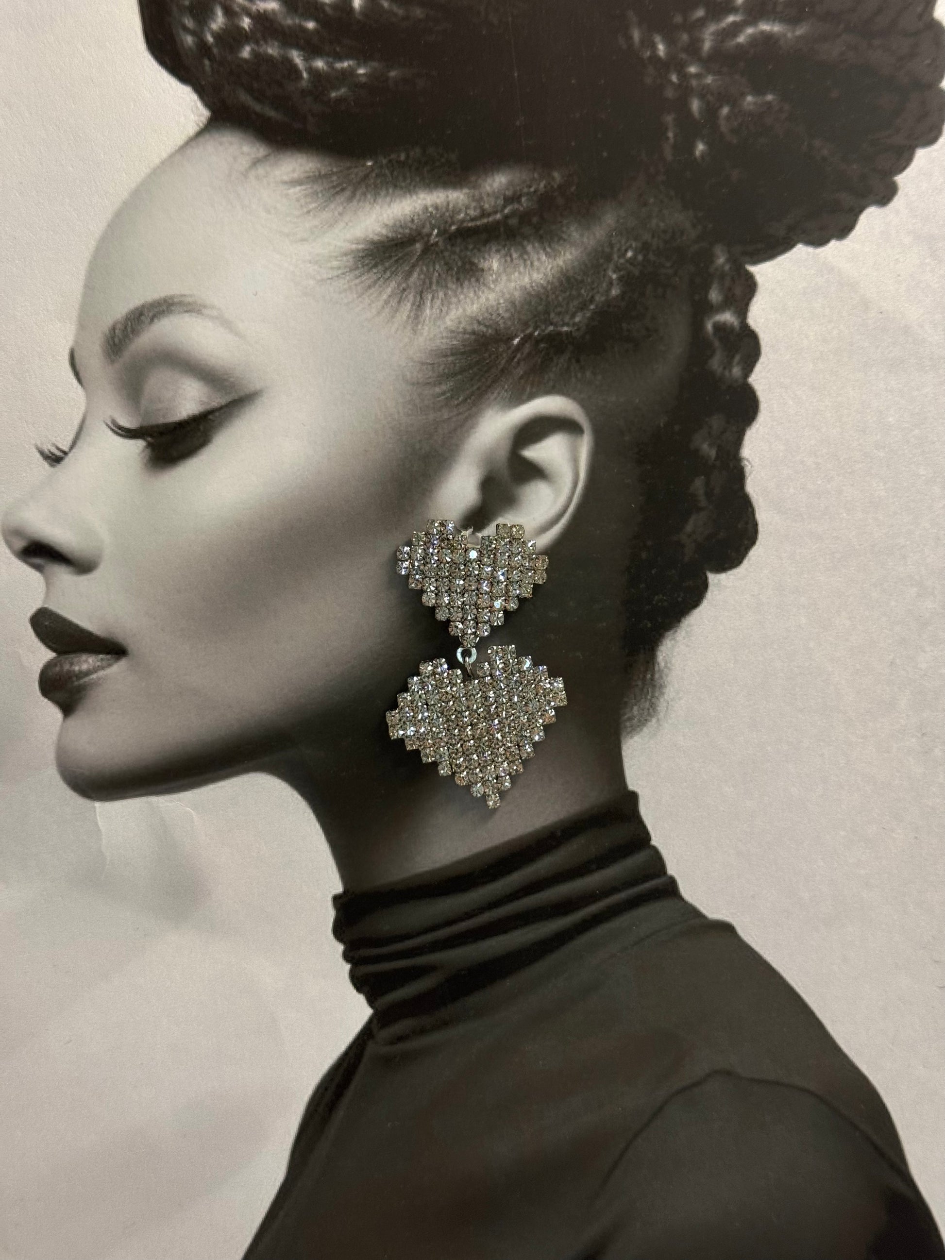 Ένα statement σκουλαρίκι με διπλή καρδιά από λαμπερές rhinestones που δημιουργούν εντυπωσιακή κίνηση και φωτεινή αντανάκλαση σε κάθε στροφή του προσώπου. Ο συνδυασμός των δύο καρδιών προσφέρει όγκο, ρομαντισμό και έντονη glam ταυτότητα. Κατασκευασμένο από ανθεκτικό ορείχαλκο υψηλής ποιότητας, με σταθερό κούμπωμα και άνετη εφαρμογή παρά το εντυπωσιακό μέγεθος. Ιδανικό για βραδινές εμφανίσεις, φωτογραφίσεις, events και κάθε στιγμή που χρειάζεται μια δόση “show-stopping sparkle”.