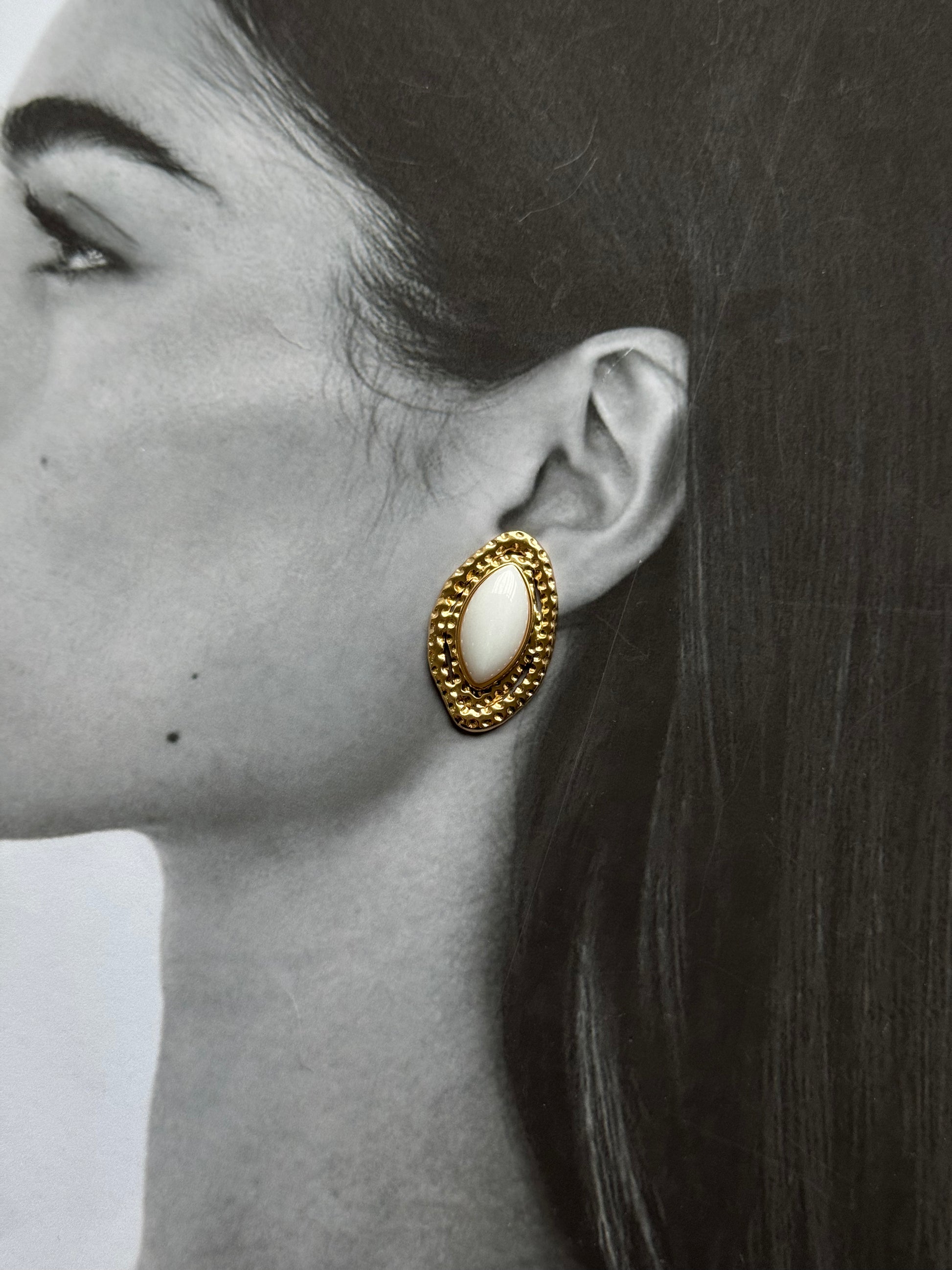 Κομψότητα και διαχρονικότητα σε ένα ζευγάρι σκουλαρίκια. Το “Ivory Embrace” συνδυάζει τη χρυσή λάμψη με το λευκό κέντρο, δημιουργώντας ένα κόσμημα που αγκαλιάζει το αυτί με αρχοντικό αλλά και minimal ύφος. Ιδανικό για γυναίκες που αγαπούν τις καθαρές γραμμές και τα εντυπωσιακά details.