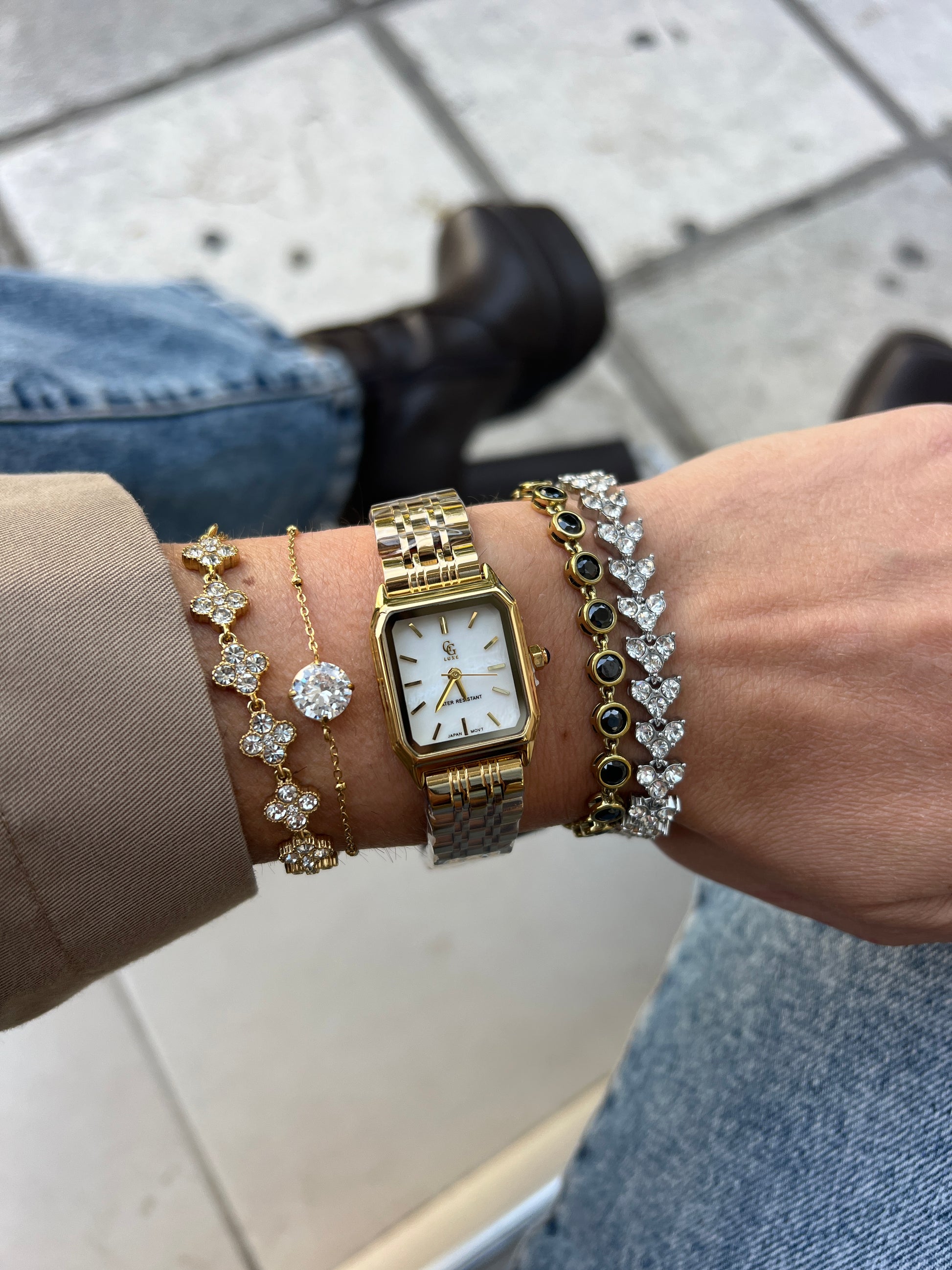 Λευκή κομψότητα με χρυσές λεπτομέρειες, το Ivory Grace είναι η επιτομή της διαχρονικής φινέτσας. Με καθαρές γραμμές και φωτεινό καντράν, αποπνέει κύρος και απλότητα, ιδανικό για εμφανίσεις που ξεχωρίζουν με διακριτικό τρόπο.