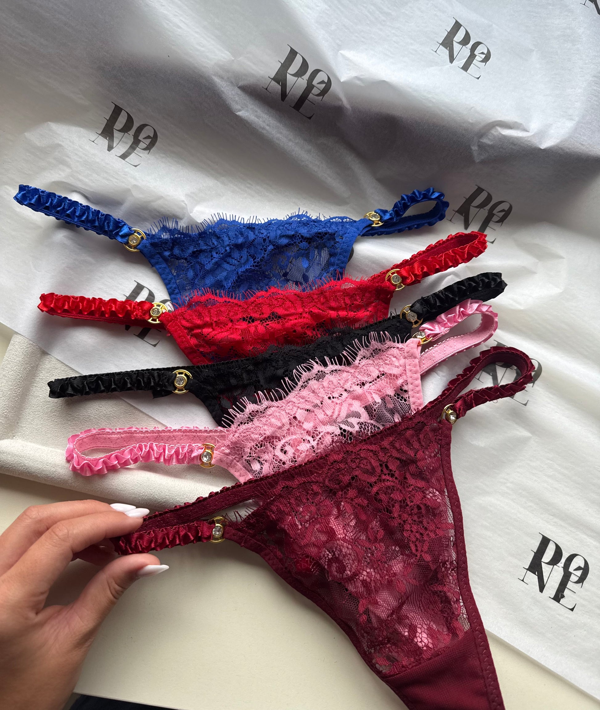 🌹 Πέντε δαντελένια string με χρυσαφί λεπτομέρειες