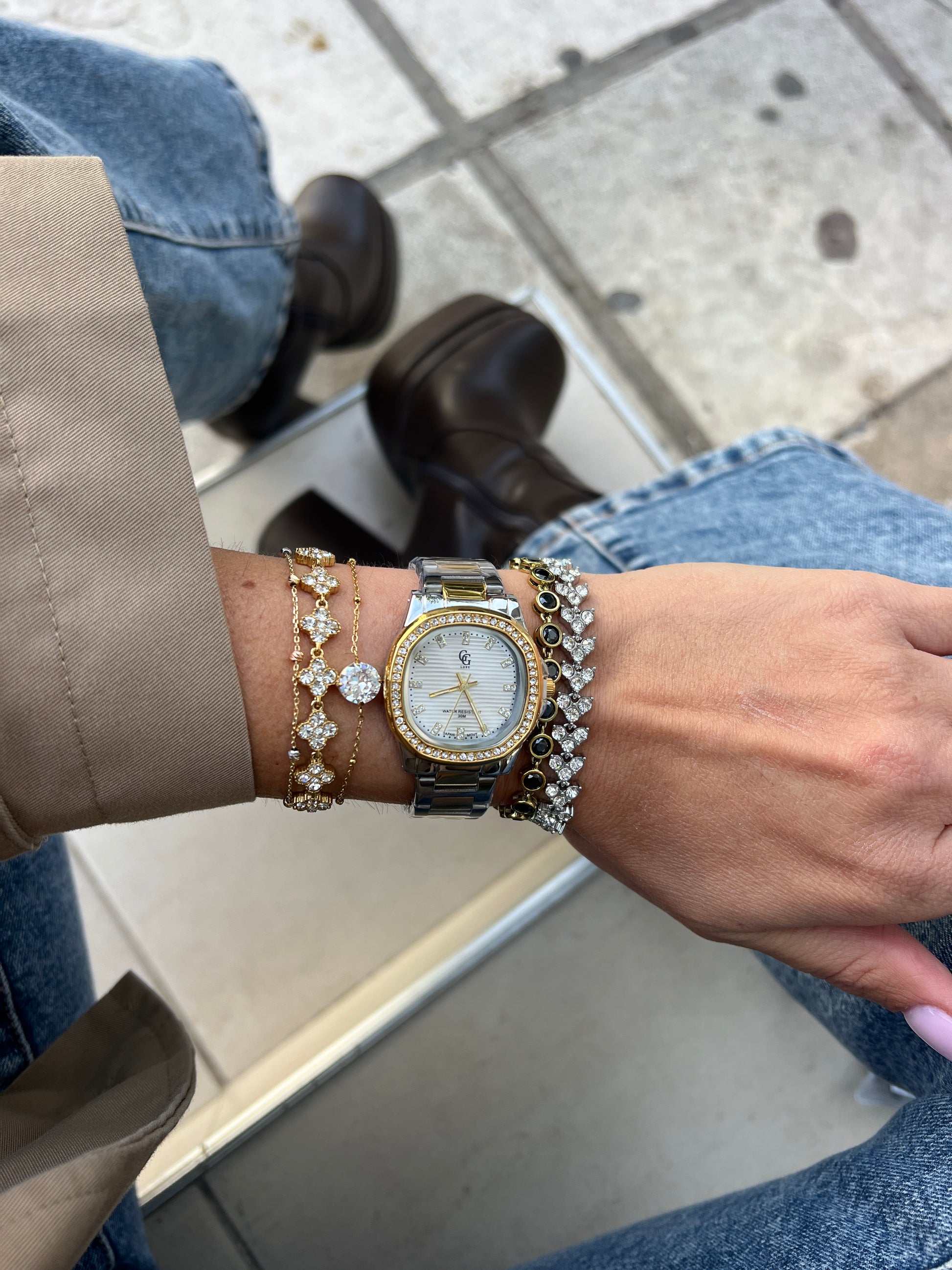 • Απόχρωση: Ασημί & Χρυσό με λευκό καντράν και διακοσμητικά ζιργκόν
