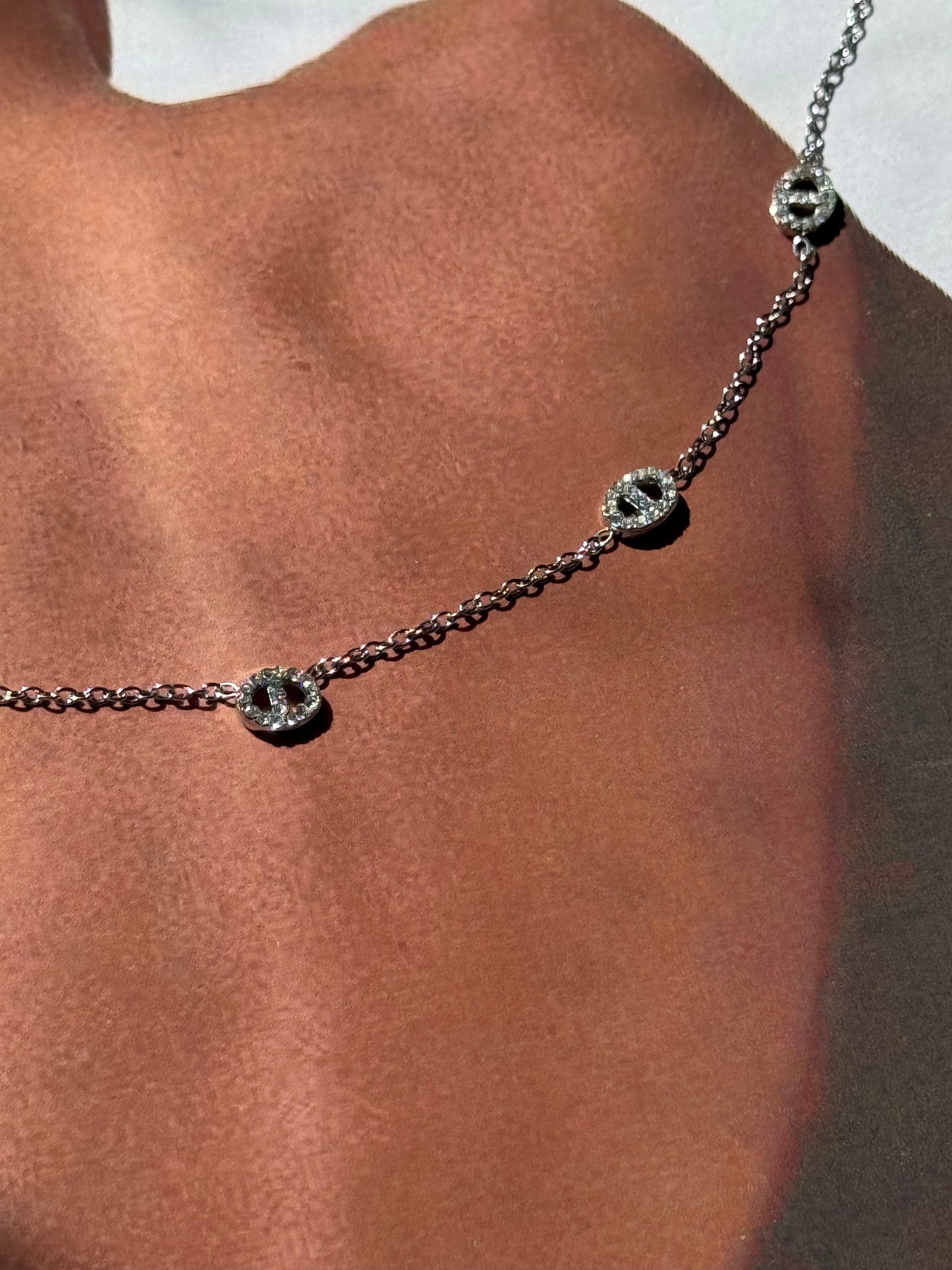 Το Luna Drops είναι ένα κομψό και διακριτικό κολιέ που αποπνέει διαχρονική φινέτσα. Η αλυσίδα στολίζεται με πέντε λαμπερά στοιχεία με κρυστάλλους, δημιουργώντας ένα σχέδιο που θυμίζει σταγόνες φωτός στο λαιμό. Ένα κόσμημα που φοριέται εύκολα καθημερινά αλλά και σε πιο ιδιαίτερες στιγμές, χαρίζοντας εκλεπτυσμένη λάμψη.
