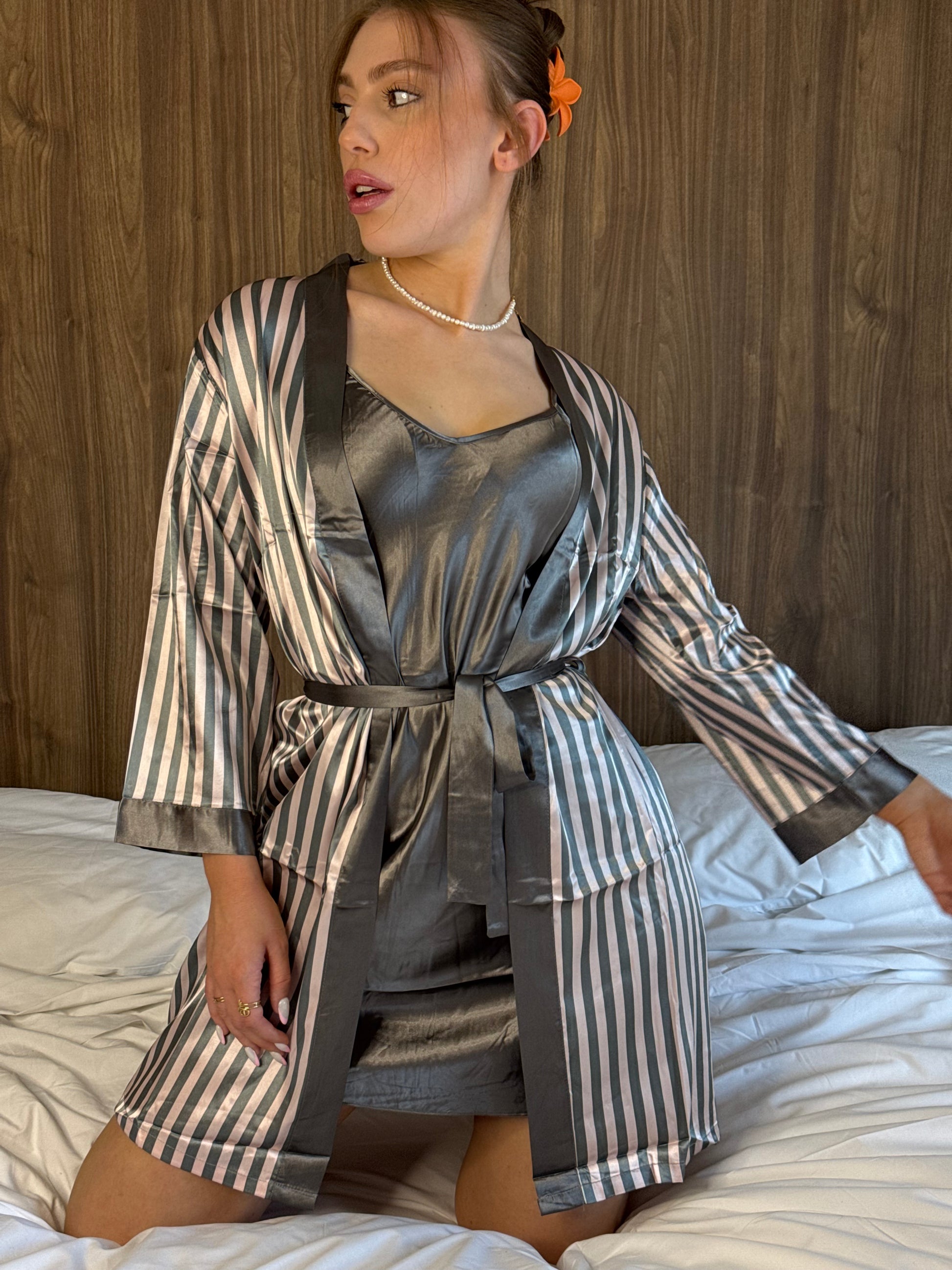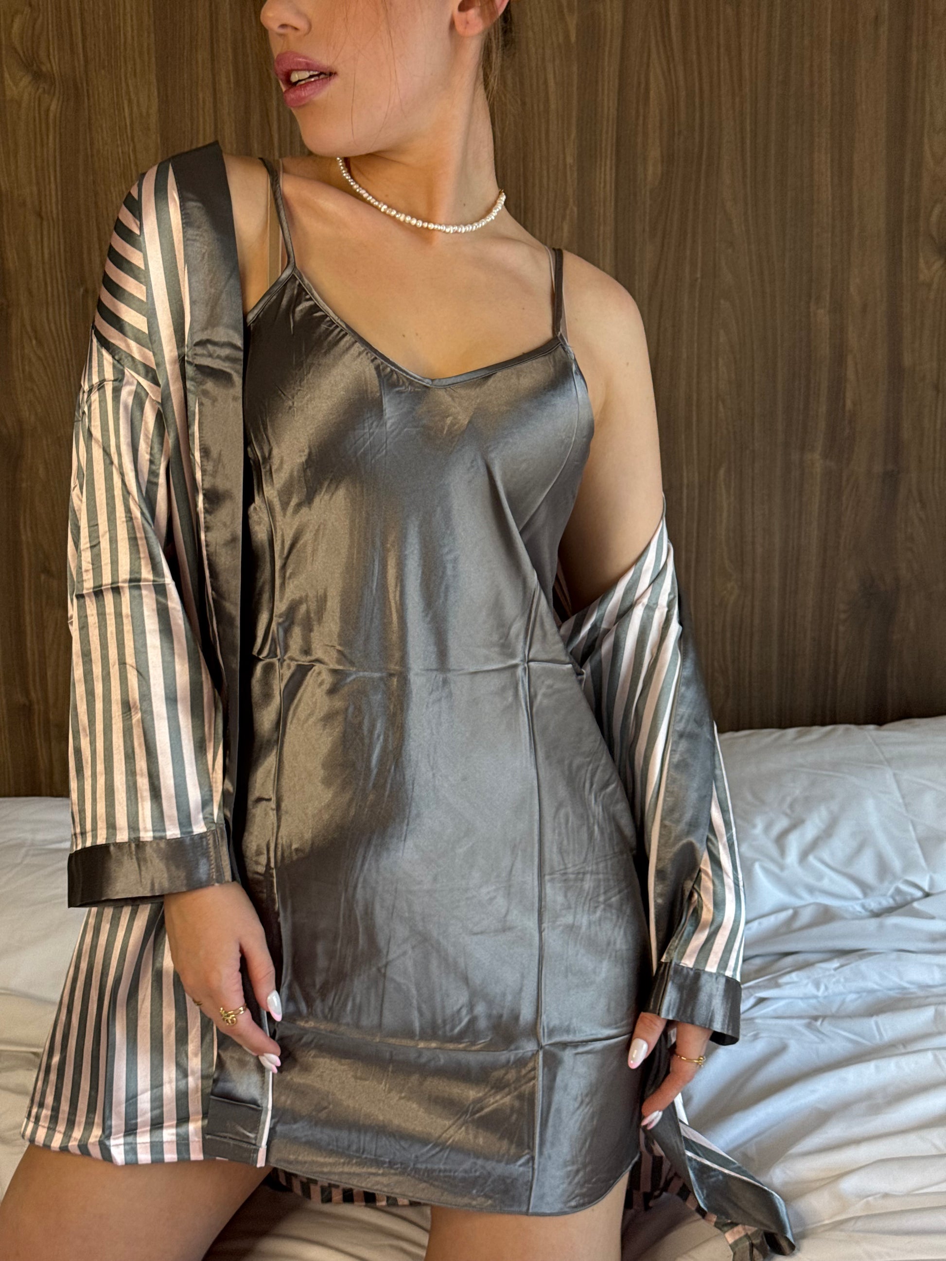✨ 2-piece set: Λευκό-ιβουάρ νυχτικό & ρόμπα