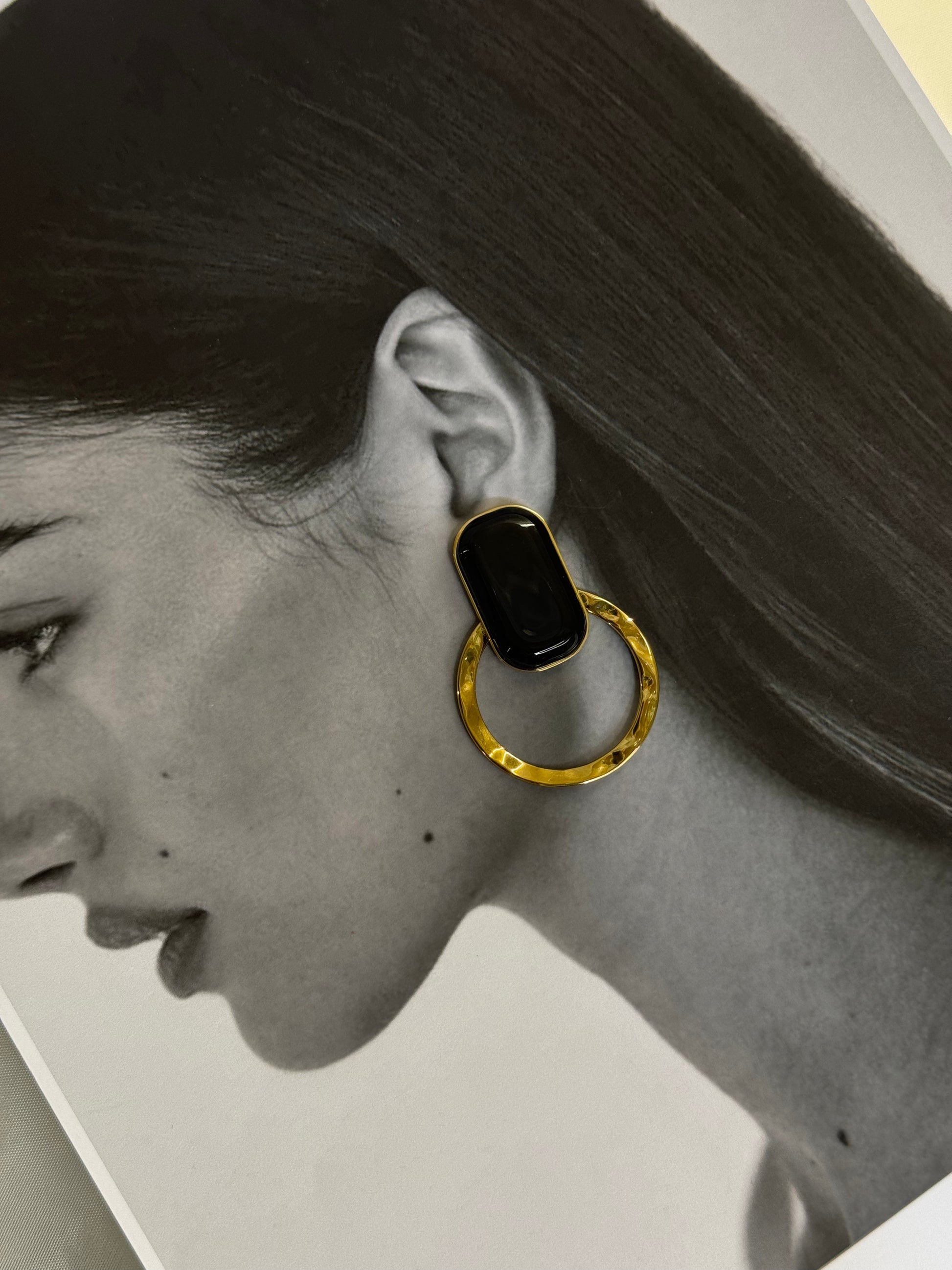 Minimal αλλά με δυναμική παρουσία, το μαύρο συνδυάζεται με hammered χρυσό κρίκο.