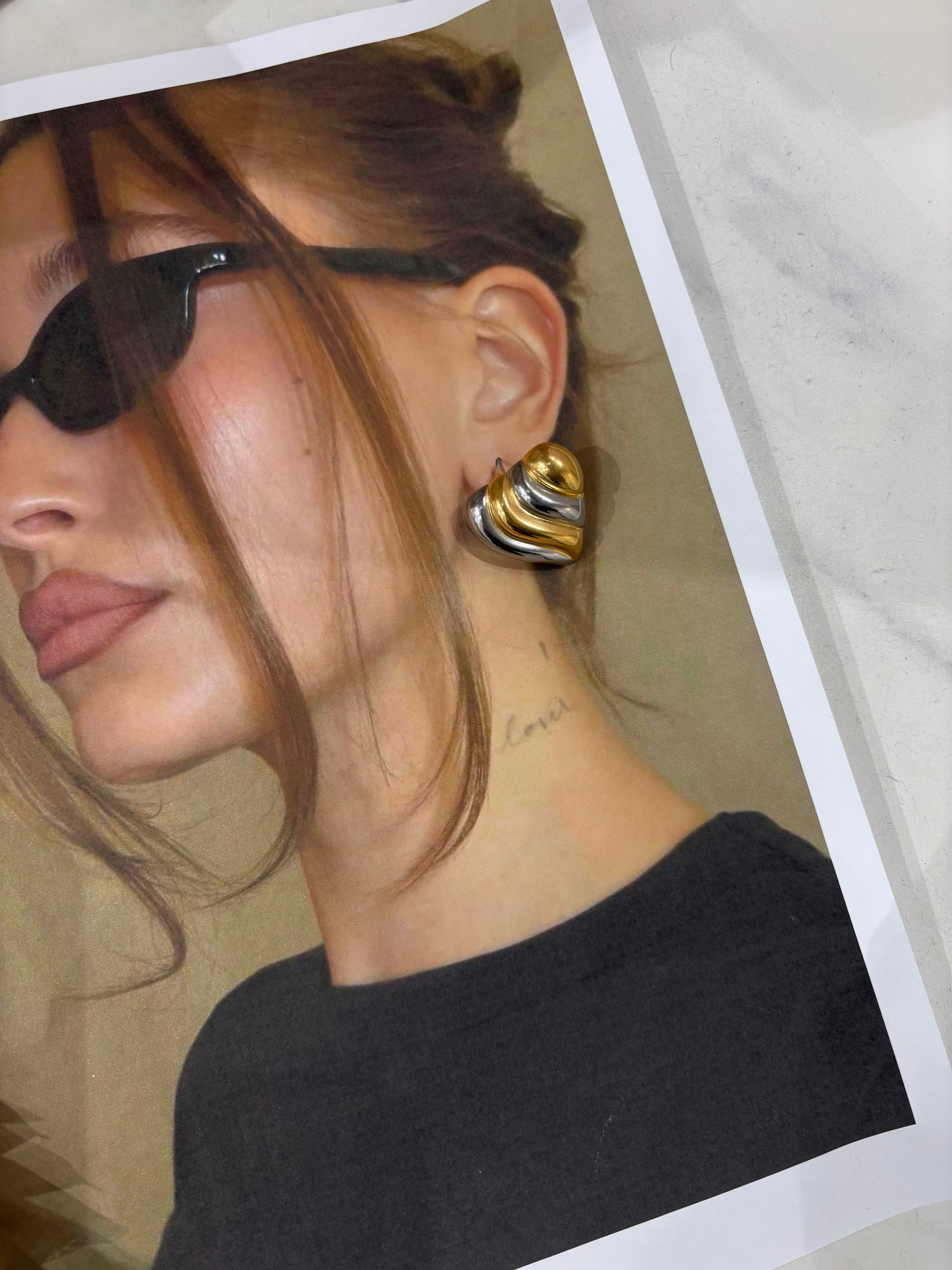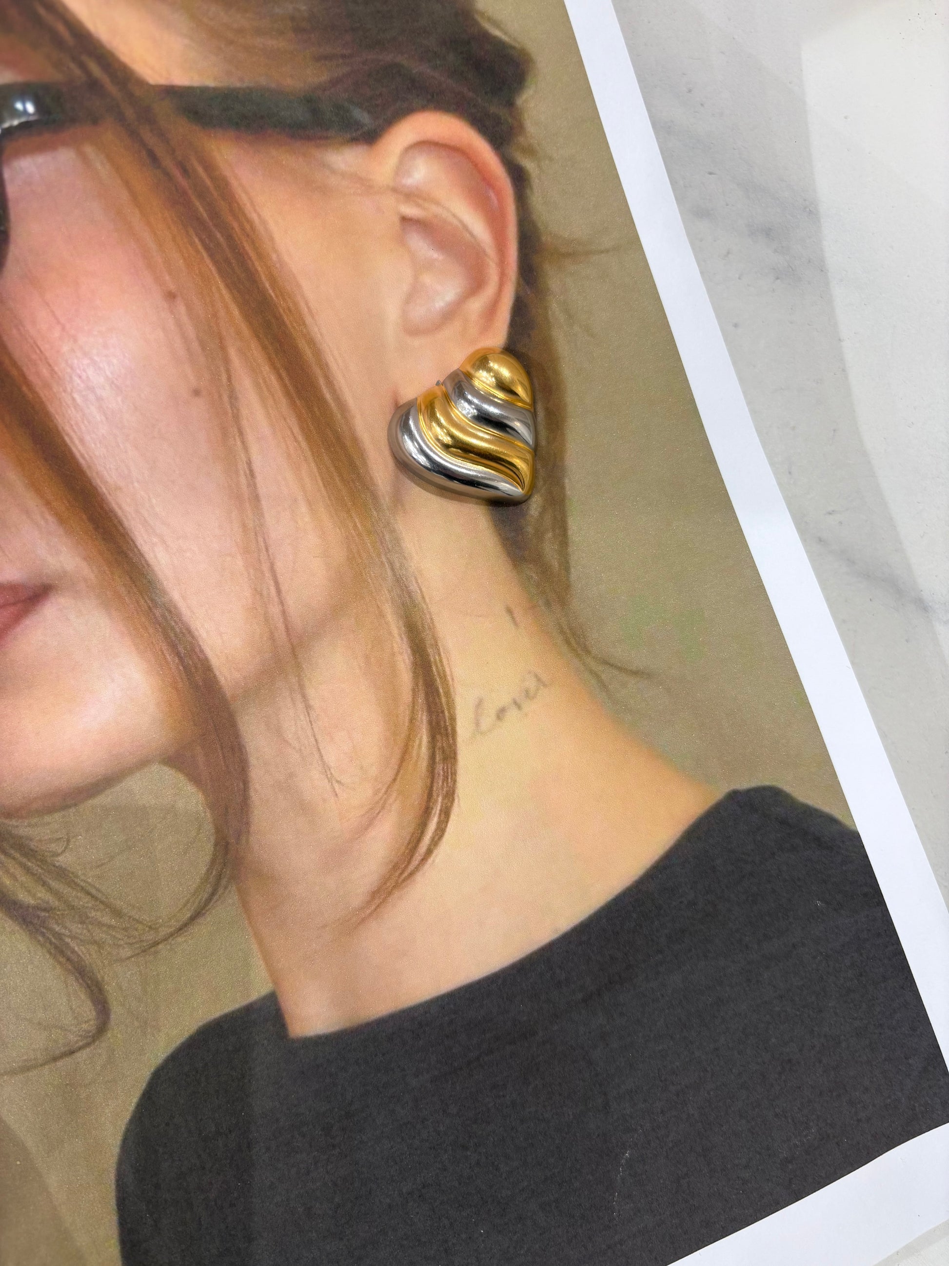 Το Molten Heart Duo είναι ένα γλυπτό σε μορφή κοσμήματος. Η ανορθόδοξη, κυματιστή καρδιά συνδυάζει χρυσές και ασημένιες αποχρώσεις δημιουργώντας ένα fluid, σύγχρονο design που ακτινοβολεί υψηλό αισθητικό status.