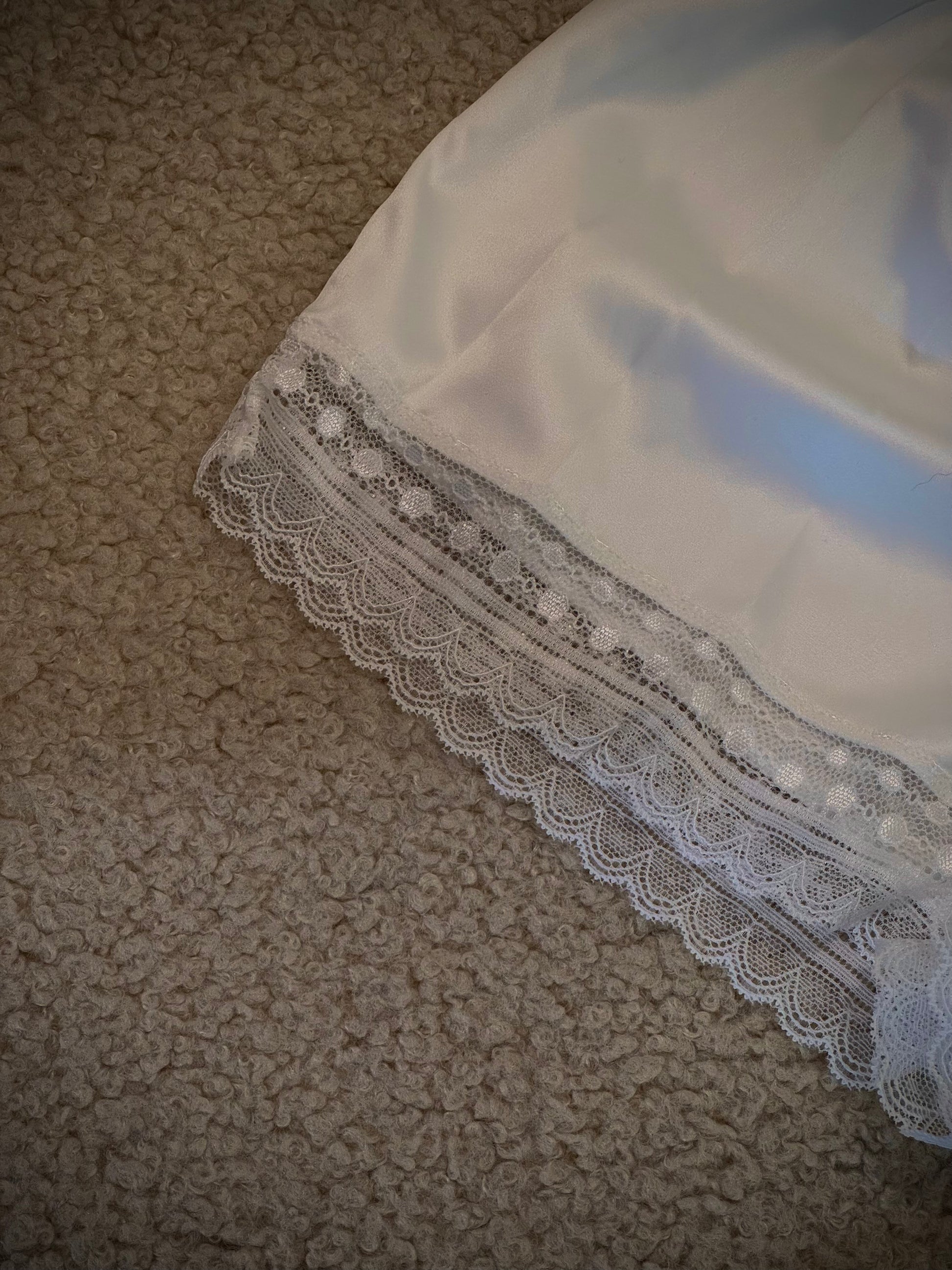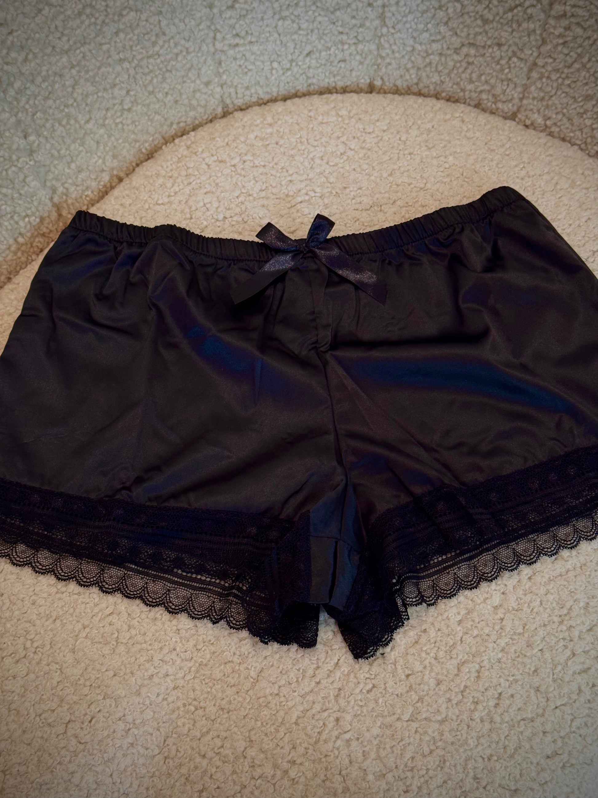 Μια τριπλή αρμονία από μετάξι και δαντέλα, φτιαγμένη για τις πιο ανάλαφρες νύχτες. Τα Moonlit Whisper Shorts αγκαλιάζουν το σώμα με την απαλότητα του σατέν, ενώ οι φιόγκοι και η δαντελένια λεπτομέρεια χαρίζουν διακριτική κομψότητα.