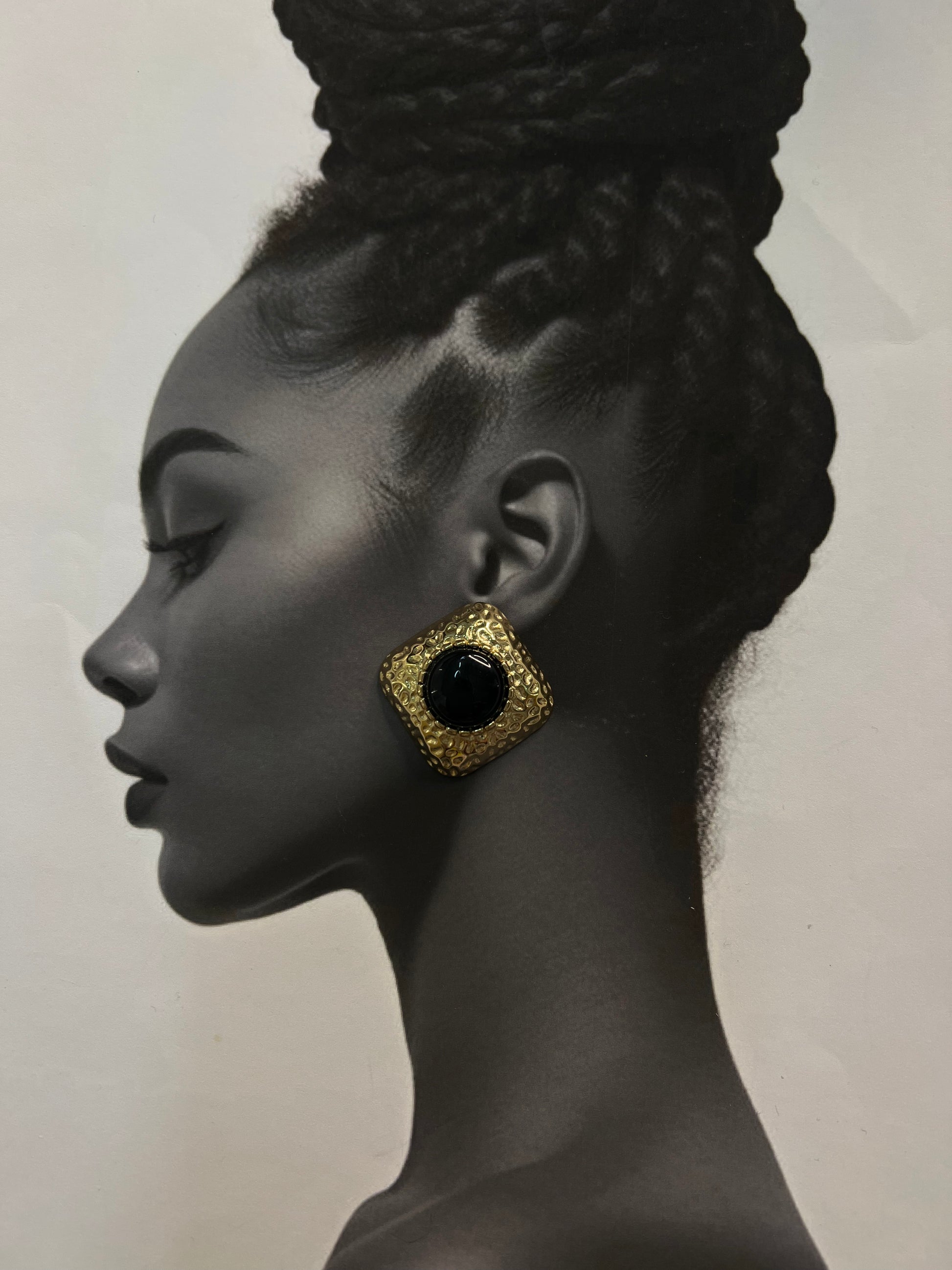 Το Noir Square είναι το απόλυτο vintage-inspired statement κομμάτι. Η τετράγωνη επιφάνειά του, με ανάγλυφη υφή και έντονη χρυσή λάμψη, αγκαλιάζει στο κέντρο μια μαύρη πέτρα με βαθύ, γυαλιστερό φινίρισμα. Ενώνει τη ρετρό αισθητική με τη σύγχρονη κομψότητα, δημιουργώντας ένα look που αποπνέει δυναμισμό και διαχρονική φινέτσα.