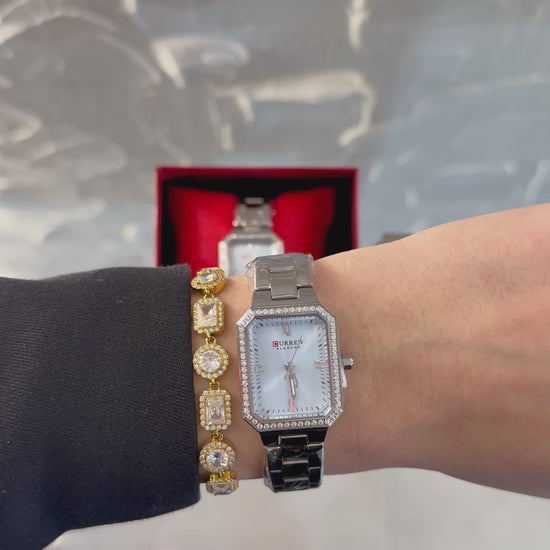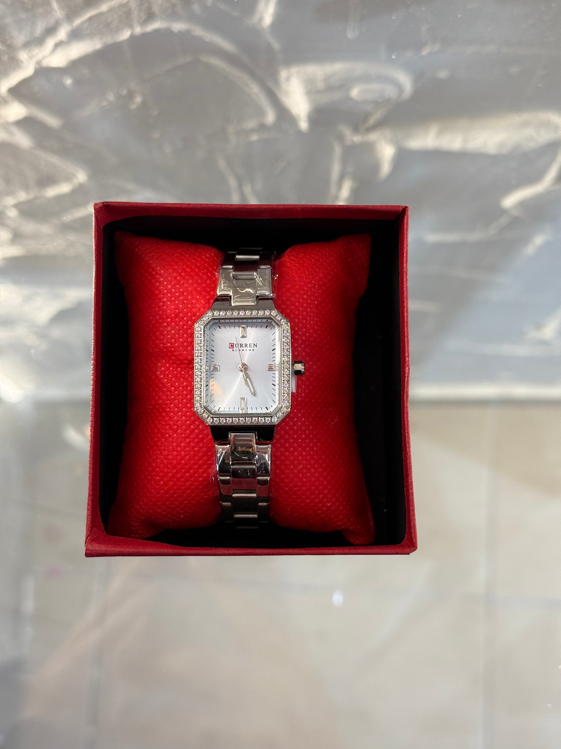 Γυναικείο Παραλληλόγραμμο Ρολόι Ασημί με Ασημί Καντράν & Στρας