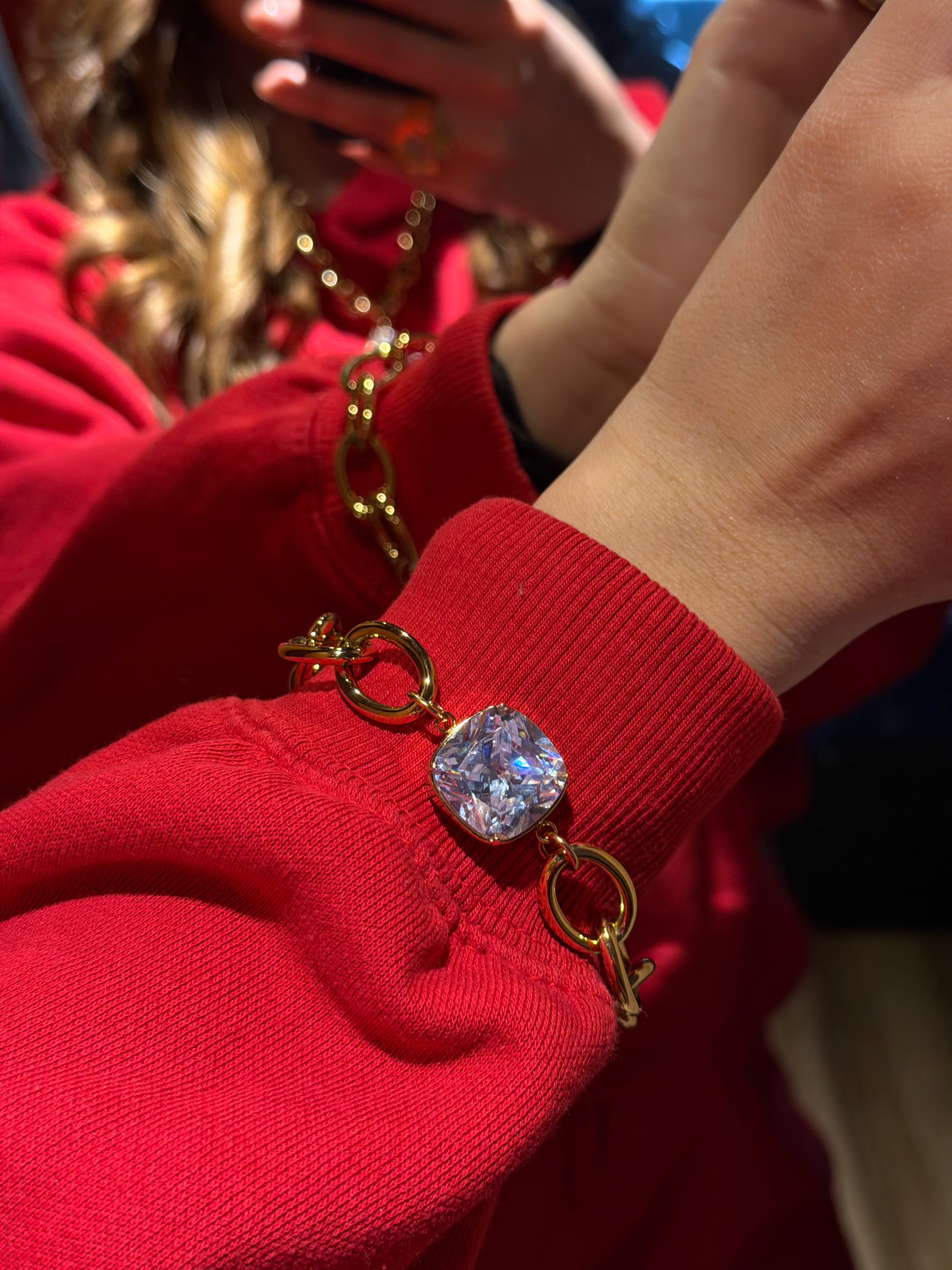 Ένα εντυπωσιακό bracelet με μεγάλη λαμπερή πέτρα κοπής cushion που αντανακλά το φως από κάθε γωνία.