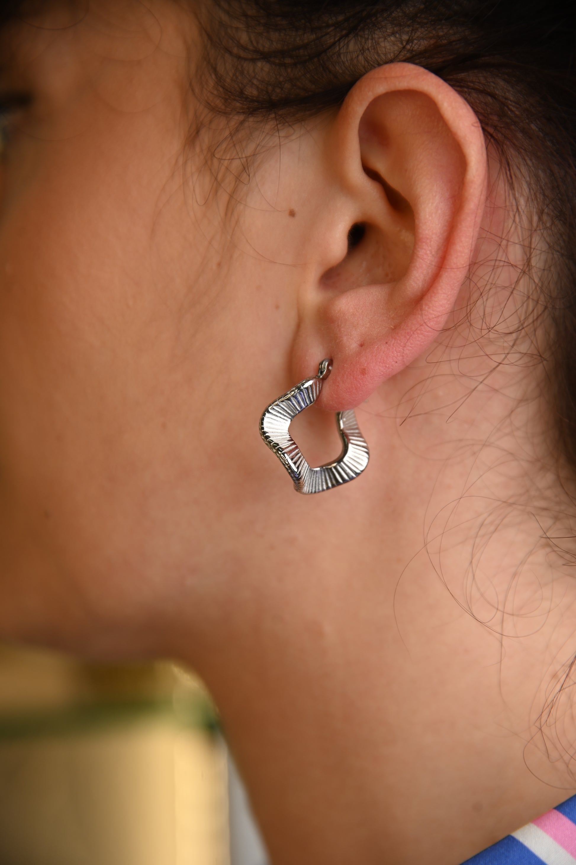 Αναβάθμισε το στυλ σου με αυτό το ασημί σκουλαρίκι σε κυματιστό γεωμετρικό σχήμα. Οι ανάγλυφες γραμμές και το ιδιαίτερο design δημιουργούν ένα statement κόσμημα με μοντέρνο χαρακτήρα.