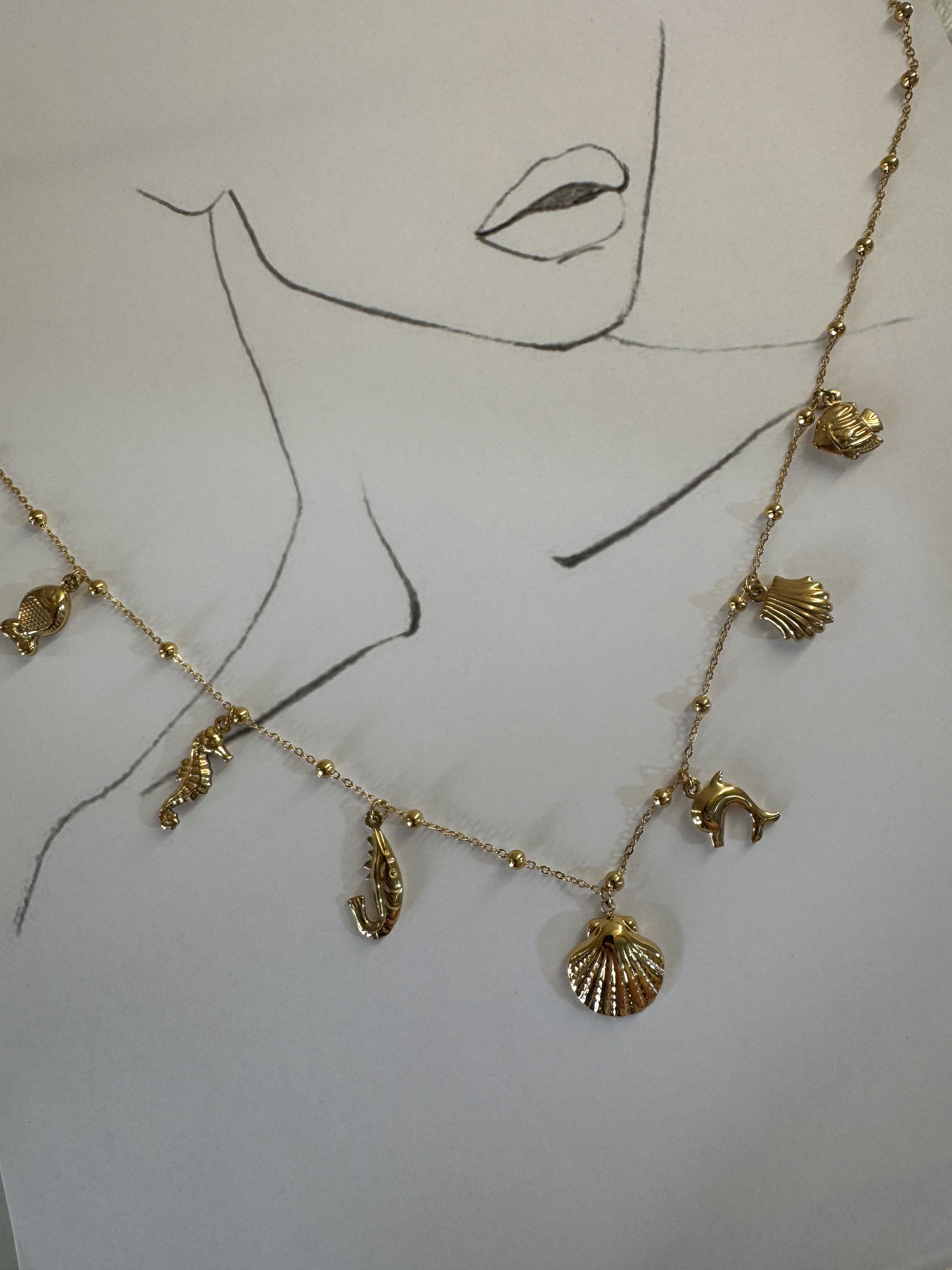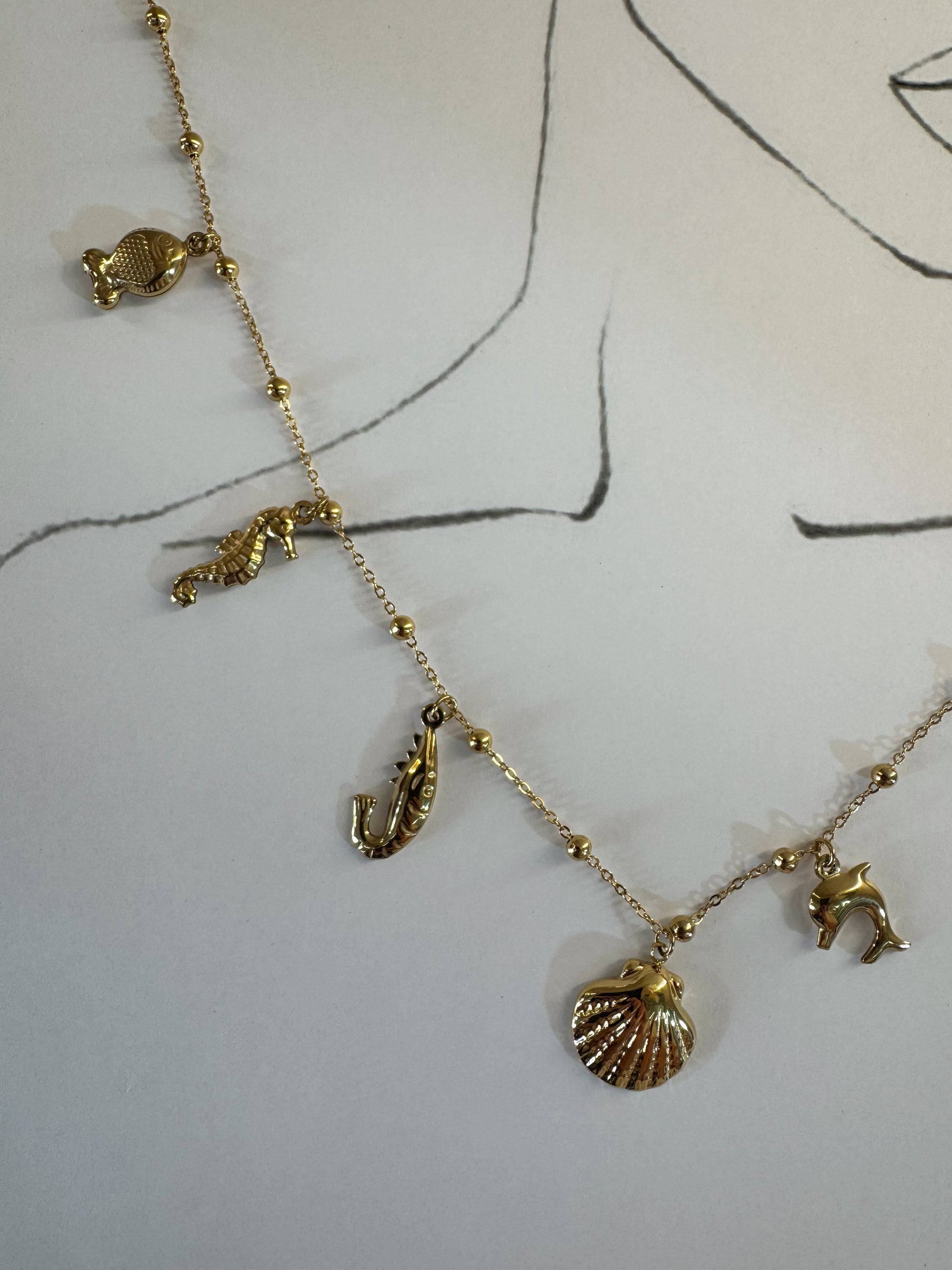Κολιέ “Oceanella” Χρυσό με Θαλασσινά Μοτίβα – Pnoe Studio